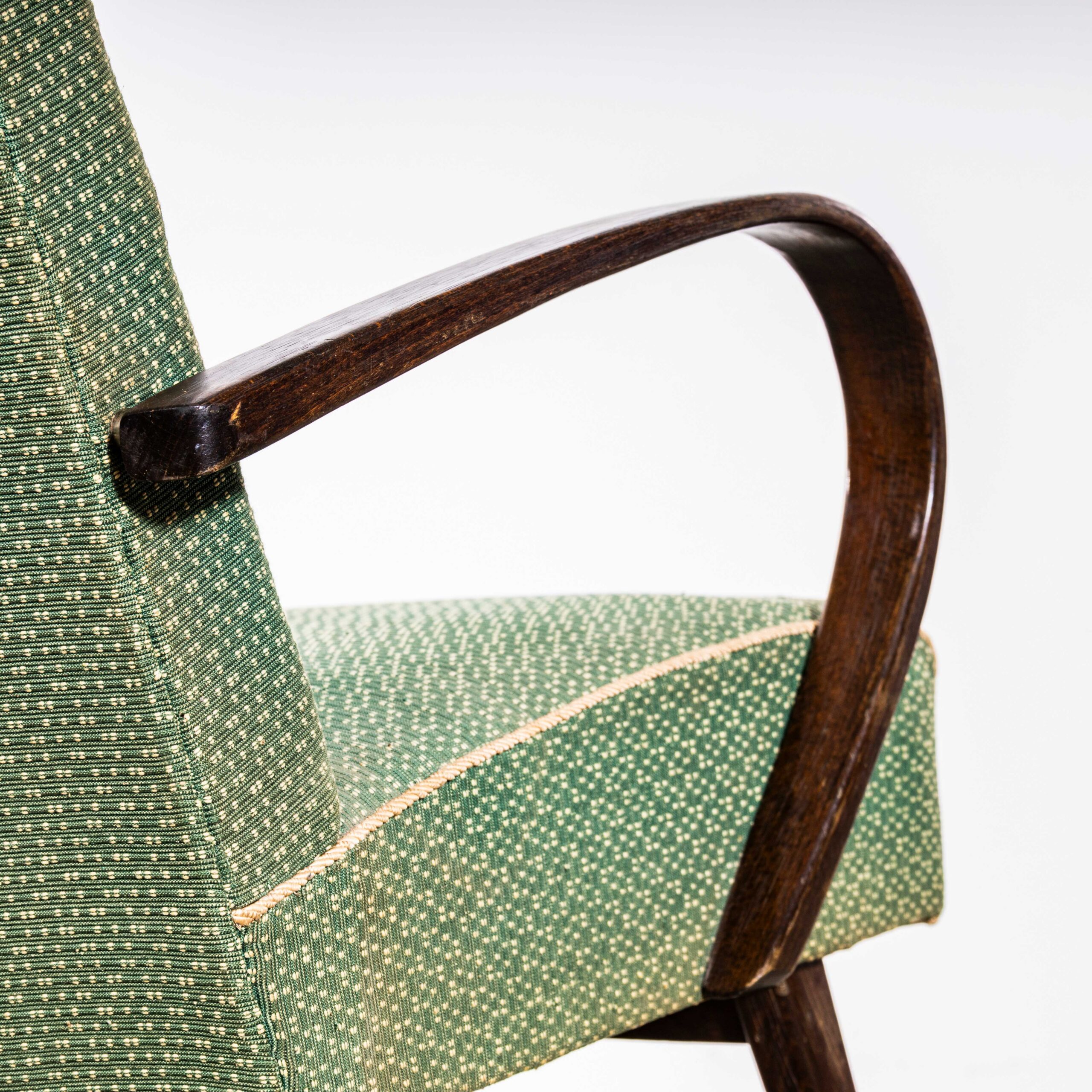 1950’s Jaroslav Šmídek Original Sprung Seat Armchairs In Geometric Jacquard Fabric. Sourced direct in the Czech republic this is one of Šmídek’s most elegant designs. We carefully select very original armchairs ensuring the fabrics and upholstery are in excellent original condition. The frame is beech throughout and the arms have been cleaned and waxed but retain their original character. The upholstery is completely original and has been deep cleaned by our workshop team. The price is for one armchair only.