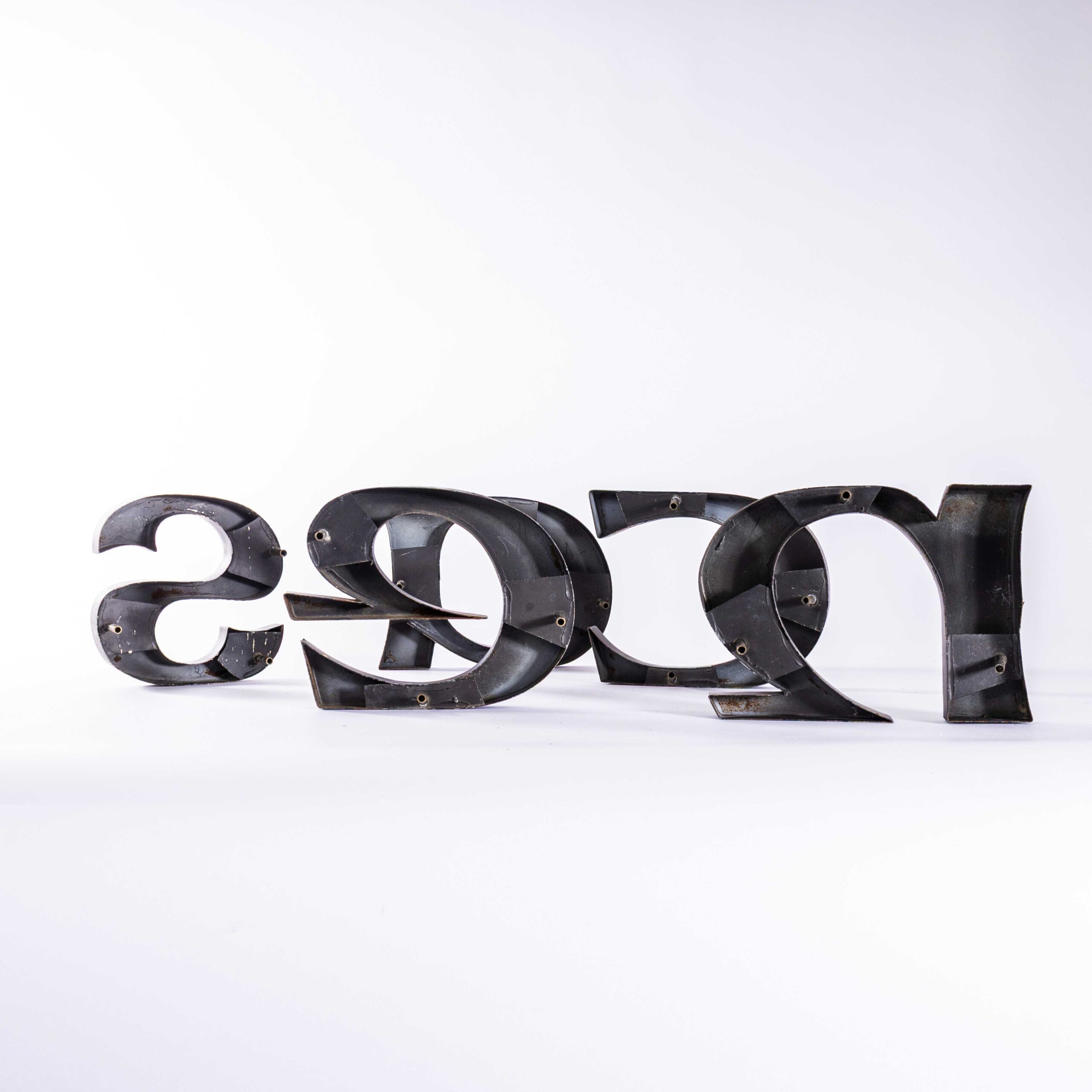 Originales großes französisches Metall-Geschäftsschild aus den 1950er Jahren Buchstaben – Keltische Schriftart
