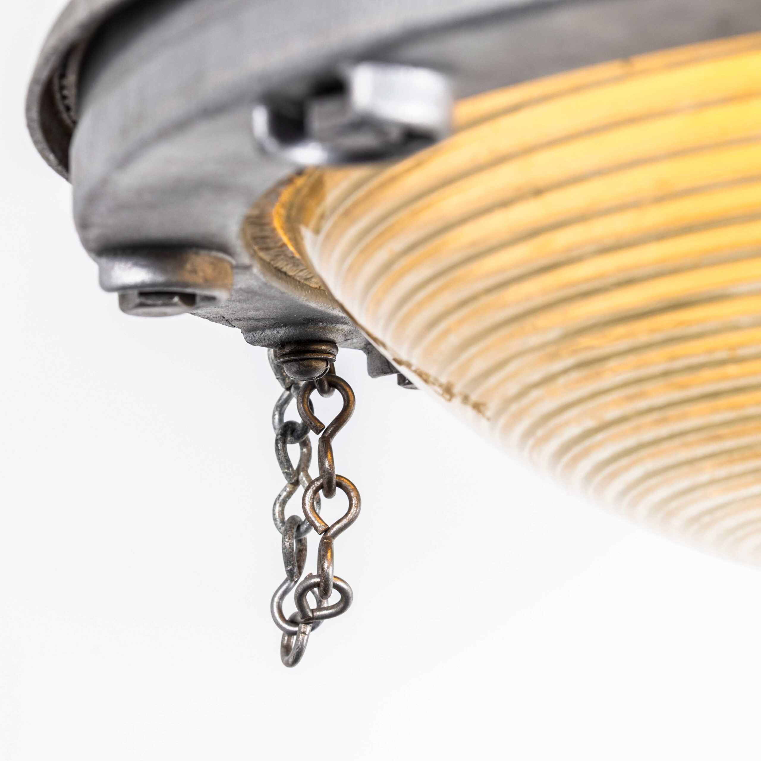 Sehr große, explosionsgeschützte, konvexe Hängelampe aus Aluminiumguss aus den 1950er Jahren. Die Lampe ist derzeit für die Einhaltung der britischen und europäischen Vorschriften verkabelt und ausgestattet. Die Lampe kann für die Einhaltung der Vorschriften in den USA oder auf jedem anderen globalen Markt verkabelt werden.