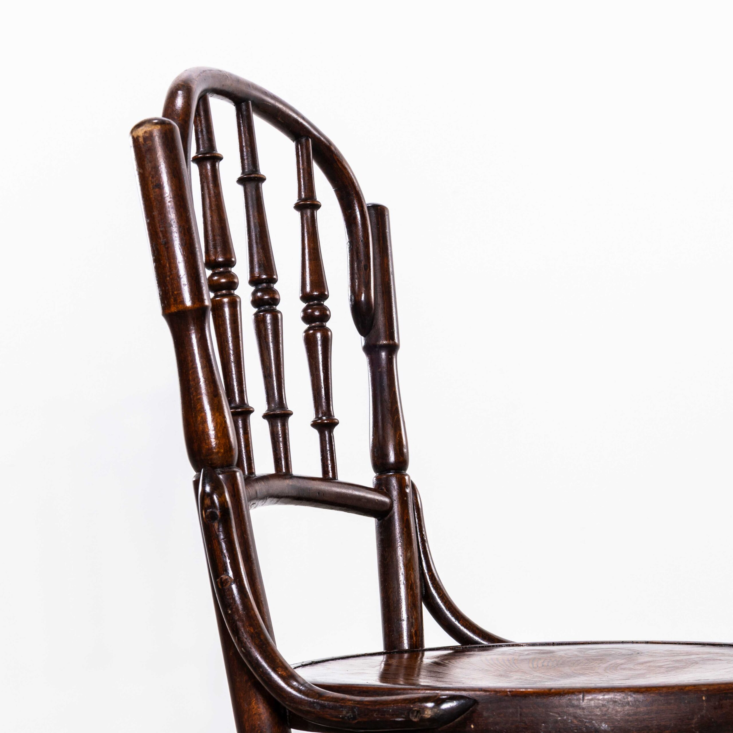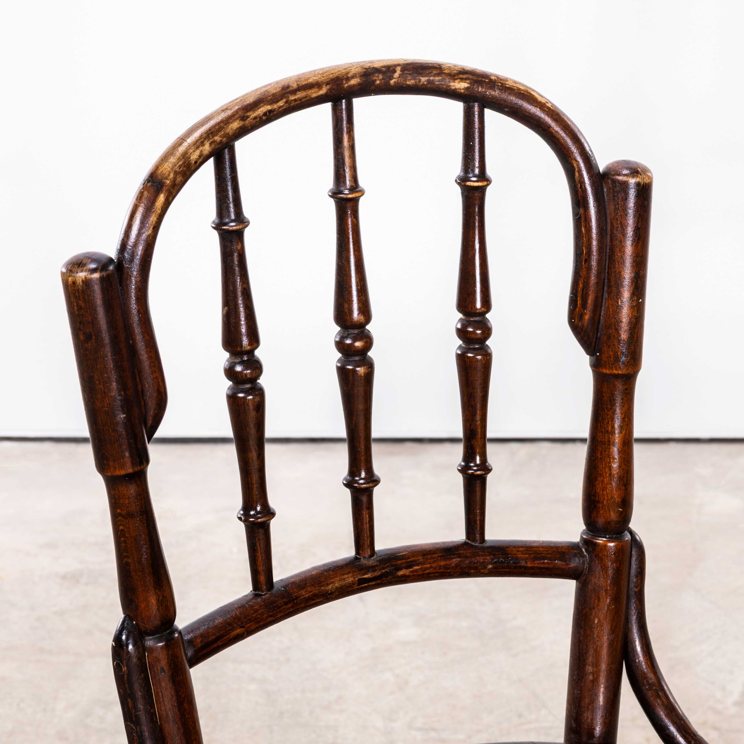 Paire de chaises de salle à manger classiques des années 1940, dossier arqué en bois courbé. Nous pensons qu'il s'agit d'une paire de chaises rares du fabricant hongrois Debrecen. L'origine précise de ces chaises reste incertaine, mais nous savons qu'au début du XXe siècle, Debrecen était un fabricant de meubles en bois courbé en Hongrie, et « Butorgyár » signifie « fabrique de meubles » en hongrois. Trois grands fabricants existaient en Hongrie, produisant des chaises dans différentes usines à travers l'empire austro-hongrois. Ces chaises datent de la fin des années 1940 ; ce sont de magnifiques pièces de collection, fascinantes et qui ont traversé les siècles. Toutes nos chaises passent par notre atelier où elles sont soigneusement révisées et restaurées avec soin. Nous ne vendons que des meubles vintage d'excellente qualité.