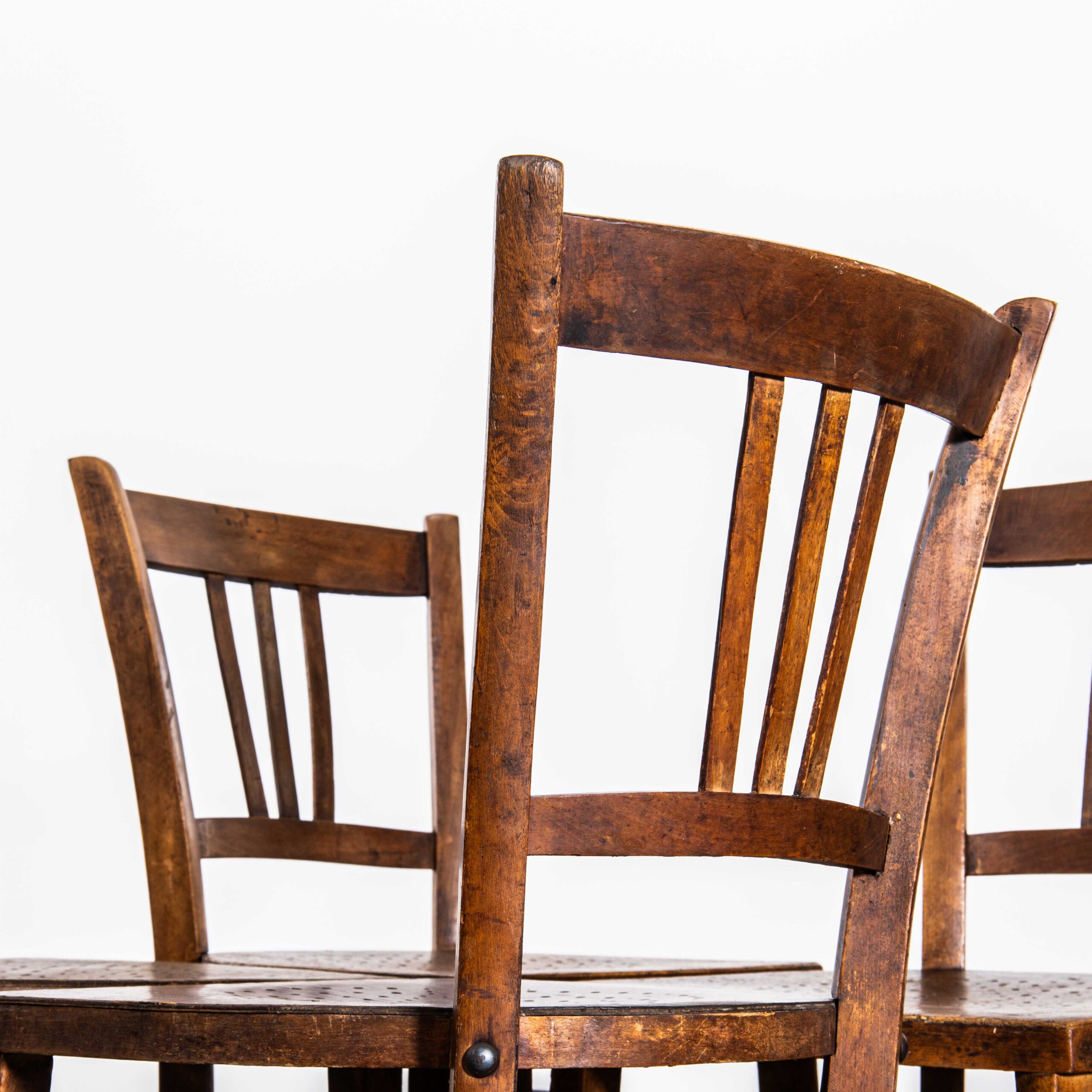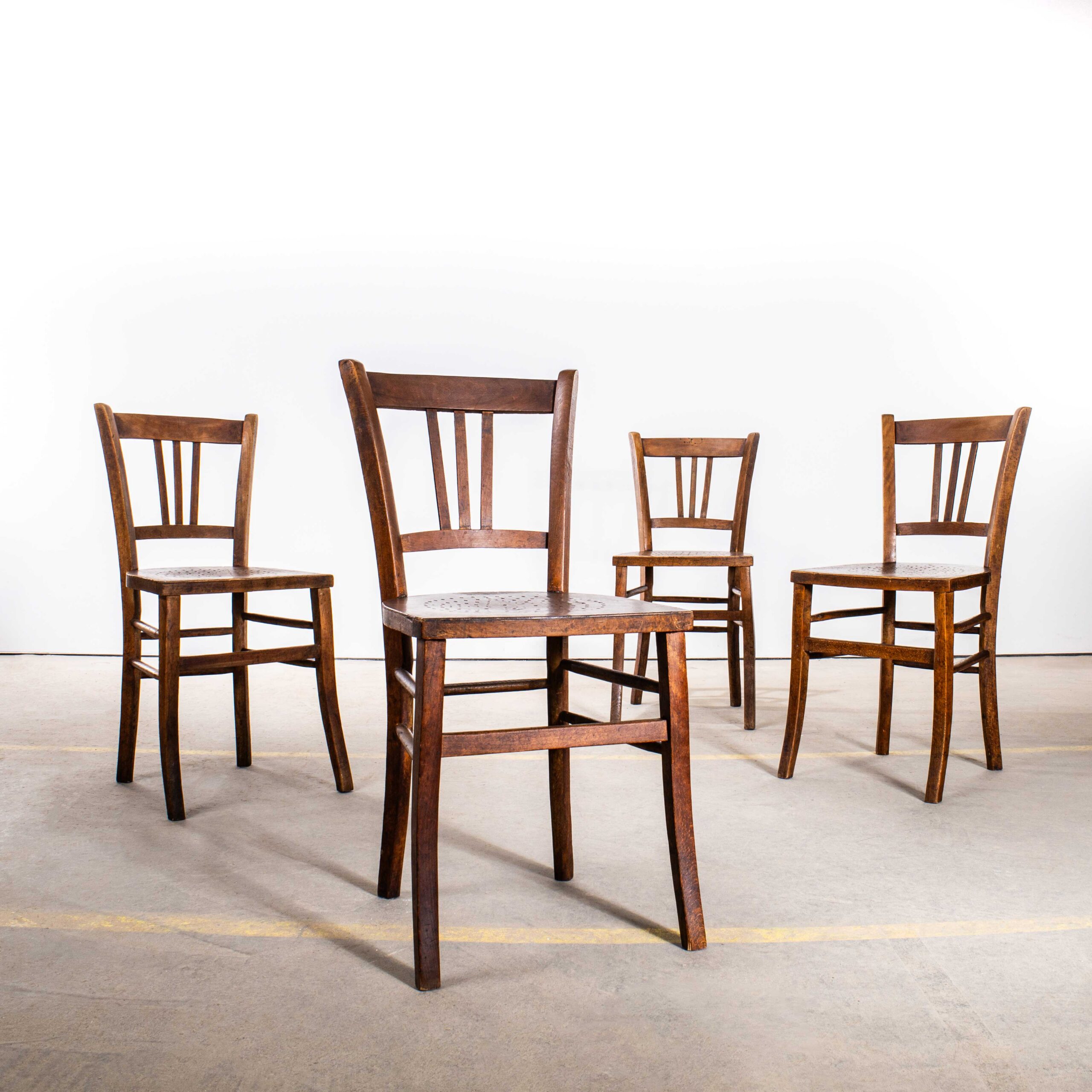 Chaises de salle à manger en noyer foncé, style ferme française des années 1940 – Ensemble de quatre