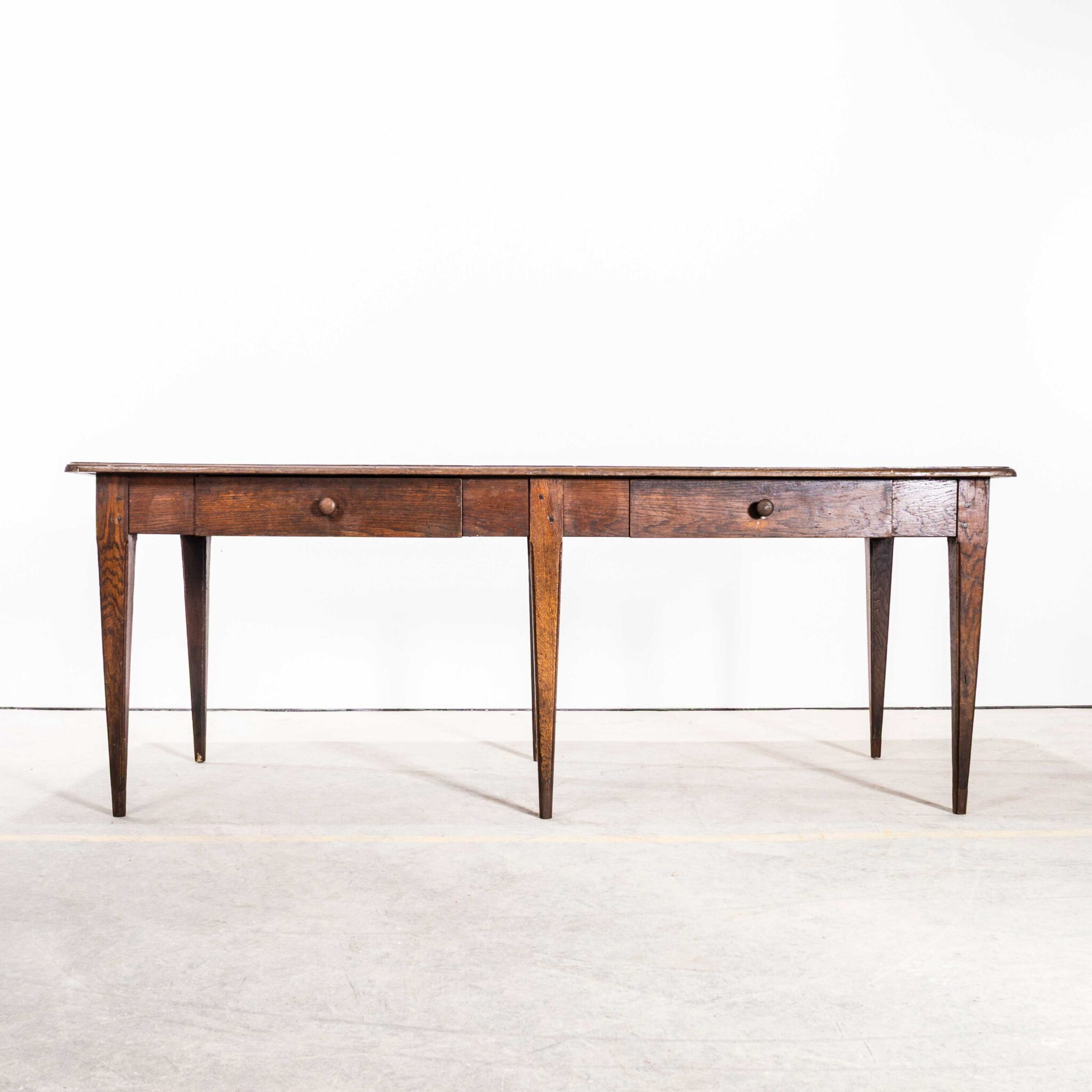 Table de salle à manger rectangulaire en chêne, à pieds droits, de bonne taille, années 1940 – Deux tiroirs