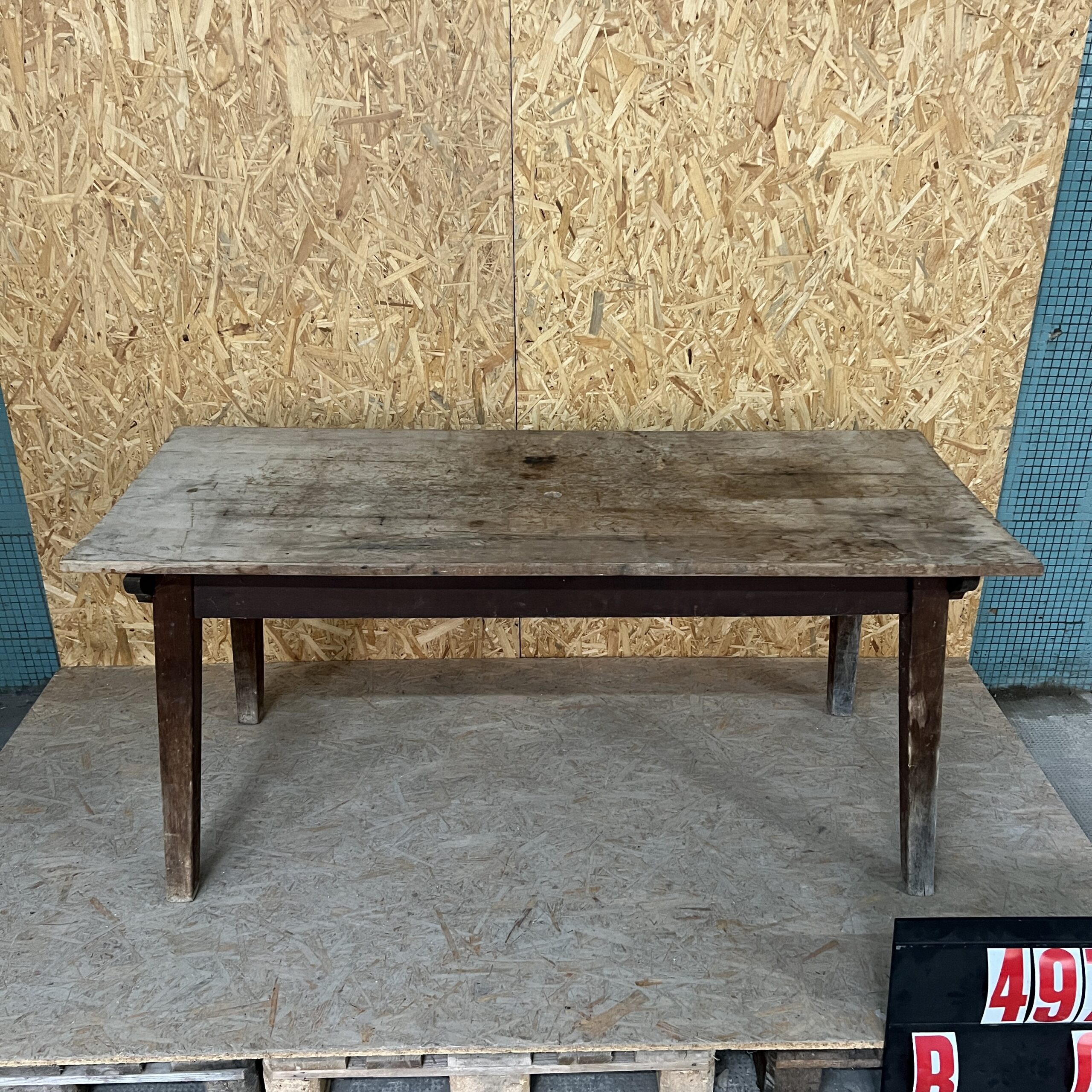 Table de salle à manger en pin massif des années 1940, plateau brossé, de style brasseur