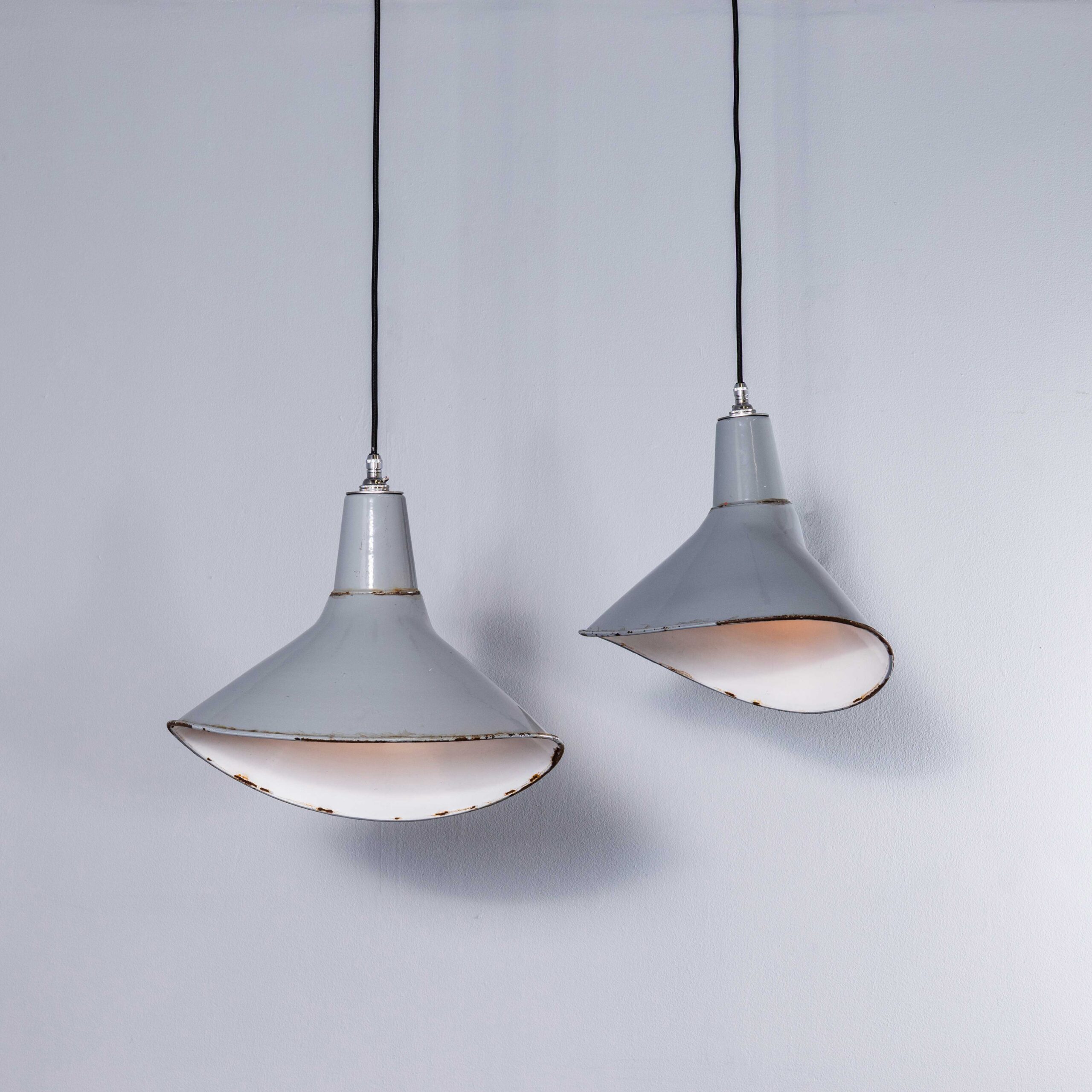 Lampes paraboliques émaillées Benjamin Crysteel grises industrielles des années 1950 – Paire