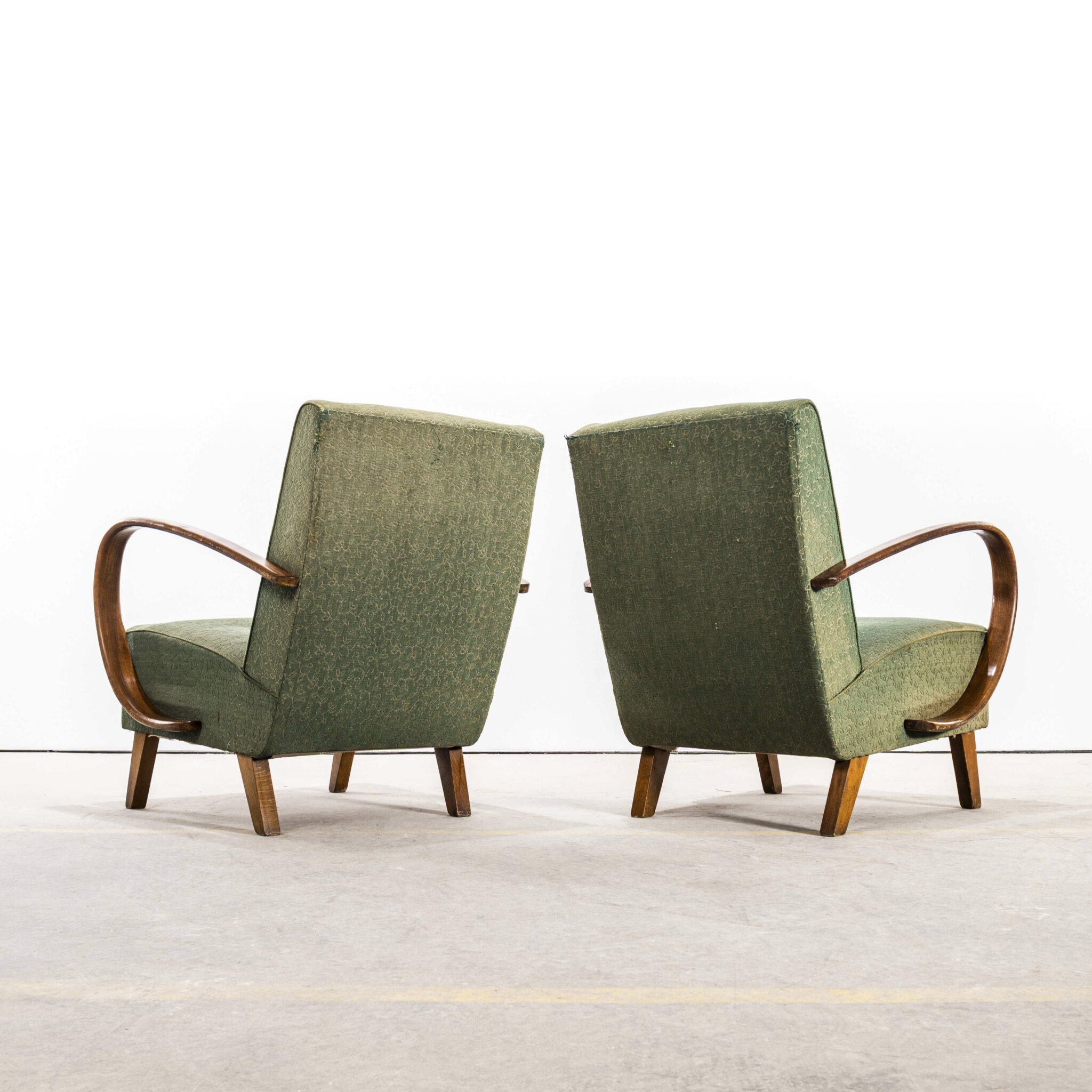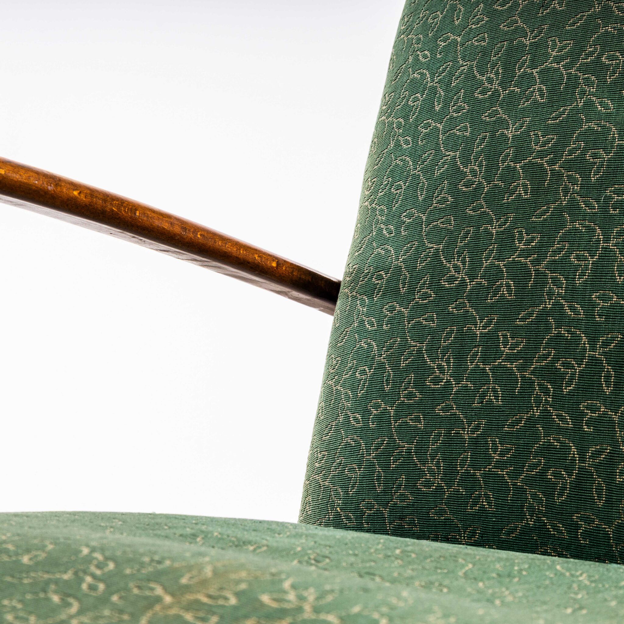 1950’s Jindrich Halabala Armchairs In Original Floral Design Jacquard Fabric. Sourced direct in the Czech republic, Halabala was a Czech industrial designer, writer, and educator. Halabala was a key force in the development of post war industrially produced European furniture. The chair frames are beech throughout and the extraordinary one piece bentwood beech arms have been cleaned and waxed but retain their original character. We carefully select very original armchairs. The upholstery is completely original and has been deep steam cleaned by our workshop team. The price is for one armchair only.