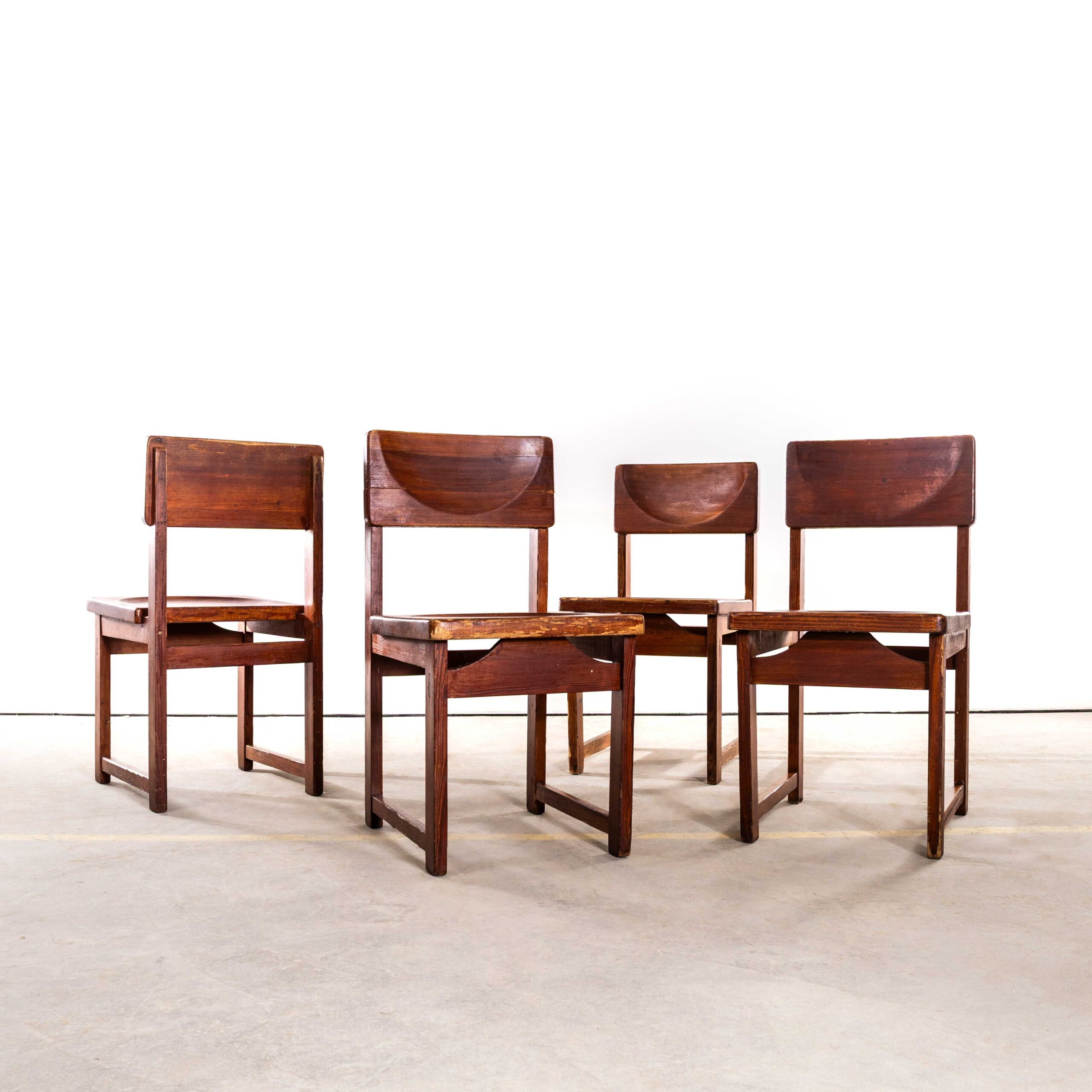 Chaises de salle à manger cubiques en pin brun moyen des années 1950