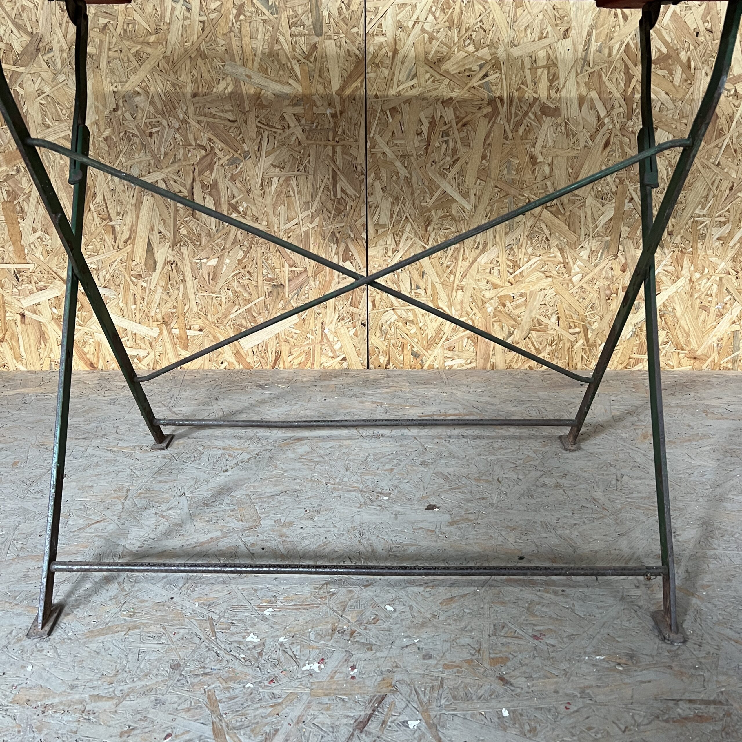 Tavolo pieghevole francese degli anni '50 con base in legno e metallo forgiato