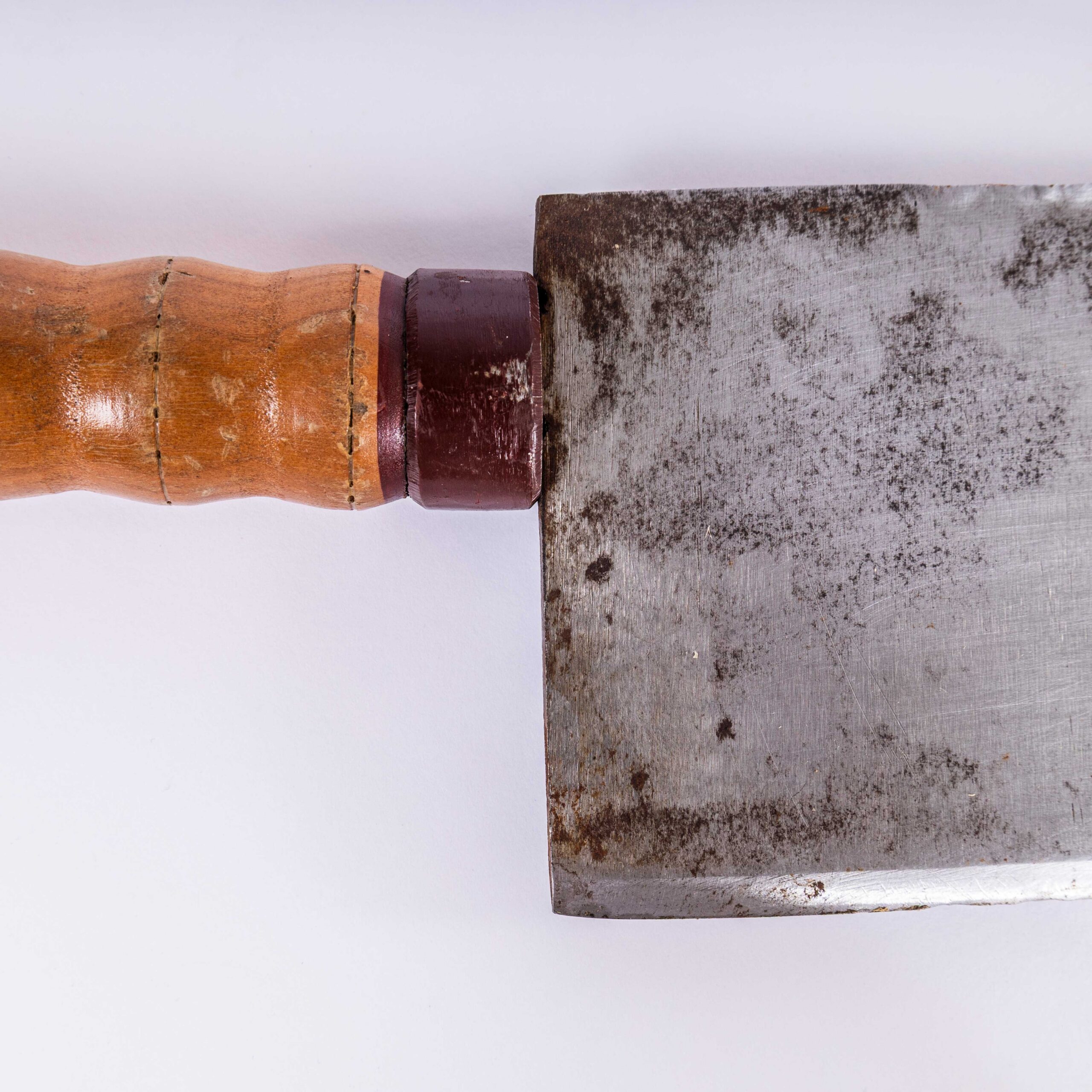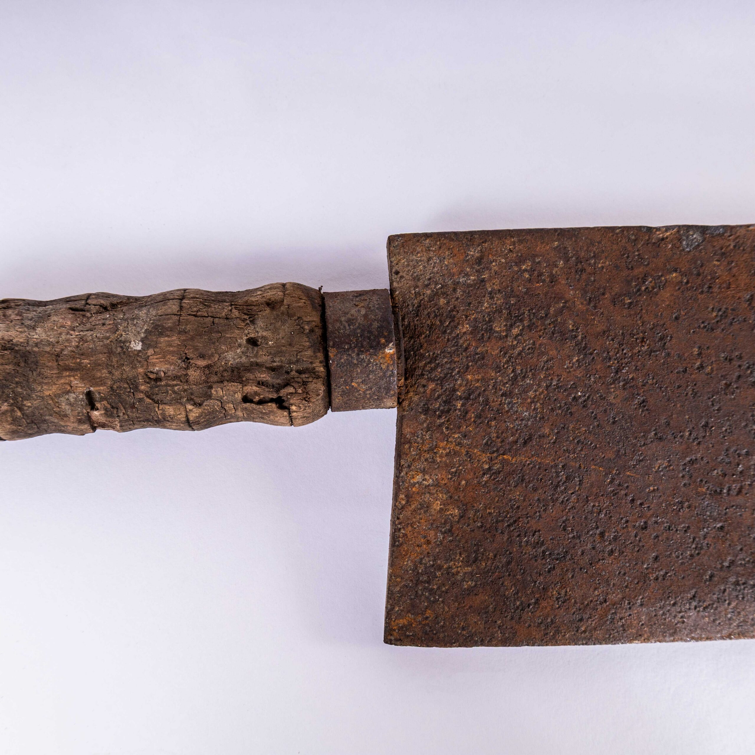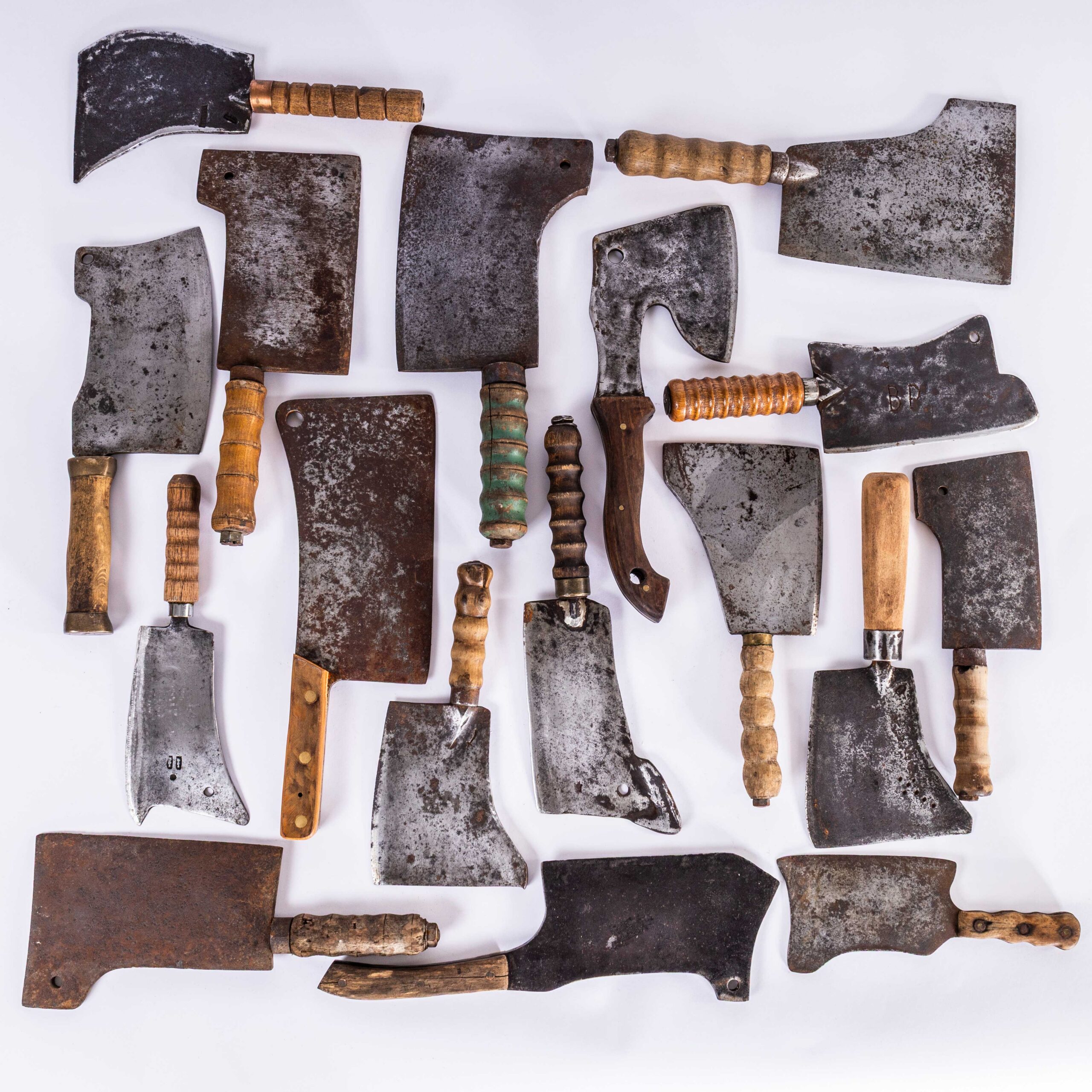 Coltelli da macellaio originali ungheresi degli anni '50. Coltelli da macellaio originali pesanti con lama in acciaio massiccio. Venduti come articolo decorativo ma possono essere affilati. Puoi selezionare un coltello specifico con il menu a discesa.