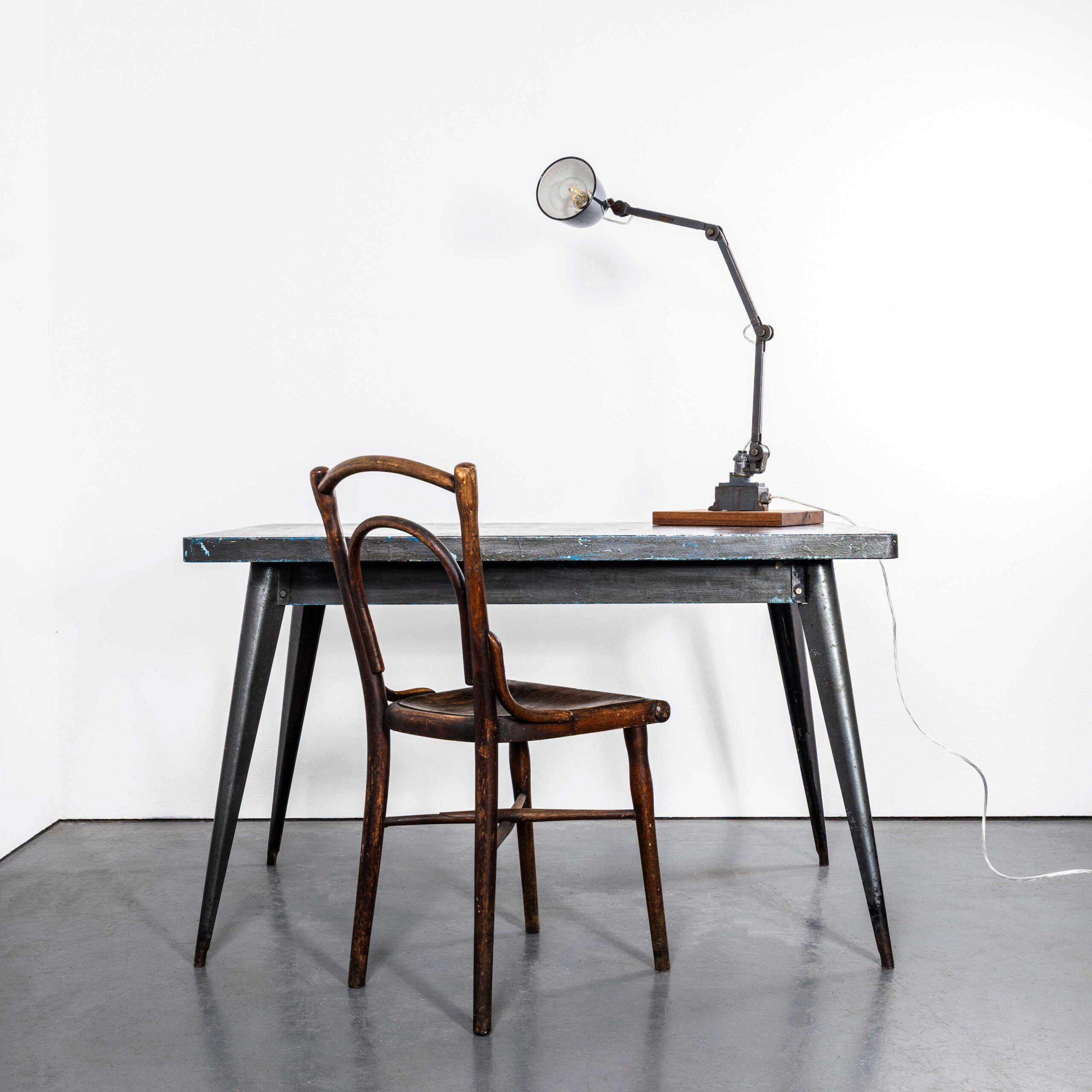 Lampada da lavoro da officina anni '50 di EDL. La lampada è stata prodotta da EDL Lighting Ltd, un'azienda britannica fondata nello Staffordshire nel 1922. La lampada è stata pulita e restaurata, ma ne abbiamo mantenuto la storia e il carattere. La lampada è testata individualmente ed etichettata secondo la norma BS EN 60598. La lampada viene fornita completamente cablata e pronta all'uso, come mostrato. Abbiamo montato la lampada su una piccola lastra di Iroko di recupero, con un contrappeso sottostante. La lampada è dotata di un portalampada filettato E27 standard, per il quale è ampiamente disponibile un'ampia gamma di lampadine a filamento moderne e vintage. Al momento non vendiamo lampadine e consigliamo lampadine a LED da 6 W massimo. La lampada è attualmente cablata e montata per la conformità al Regno Unito e all'UE. Si prega di notare che verrà installata la spina corretta per l'uso nel Paese di consegna. L'altezza della lampada è misurata quando è completamente estesa.