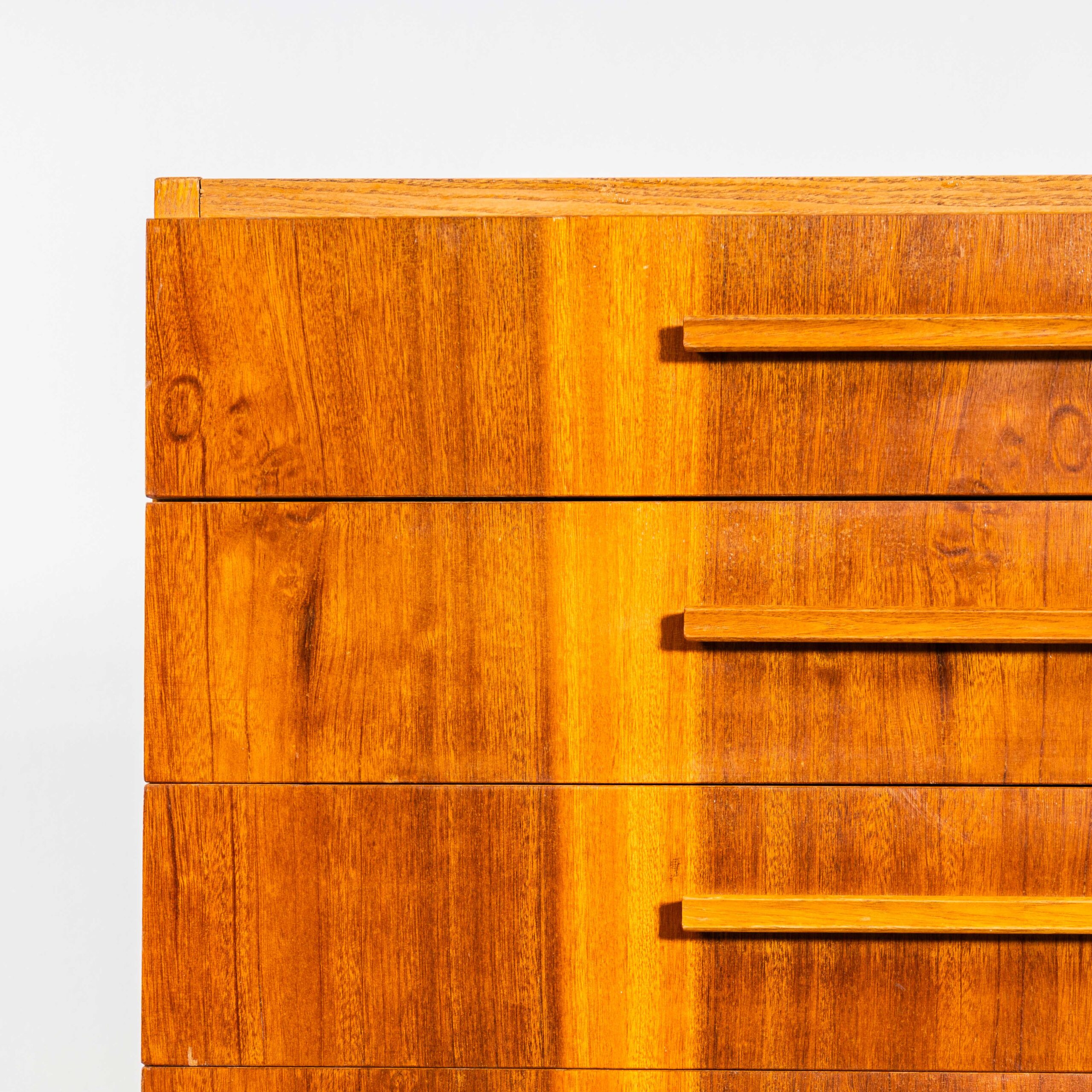 Cassettiera di buone dimensioni di metà secolo, anni '60 - UP Zavody. Superbo e pratico mobile contenitore di metà secolo, realizzato dal produttore ceco Up Zavody. La Repubblica Ceca è stata un grande produttore di mobili di alta qualità di metà secolo, seguendo l'ondata di modernismo originata dalla scuola Bauhaus. Il mobile principale è realizzato in betulla ben venata con cassetti in sapele venato e selezionato a contrasto. L'intero mobile è splendidamente realizzato, poggiando su gambe a perno in sapele. Il nostro laboratorio ha restaurato con cura il mobile, quindi tutti i cassetti funzionano correttamente e il mobile è in condizioni originali eccezionali.