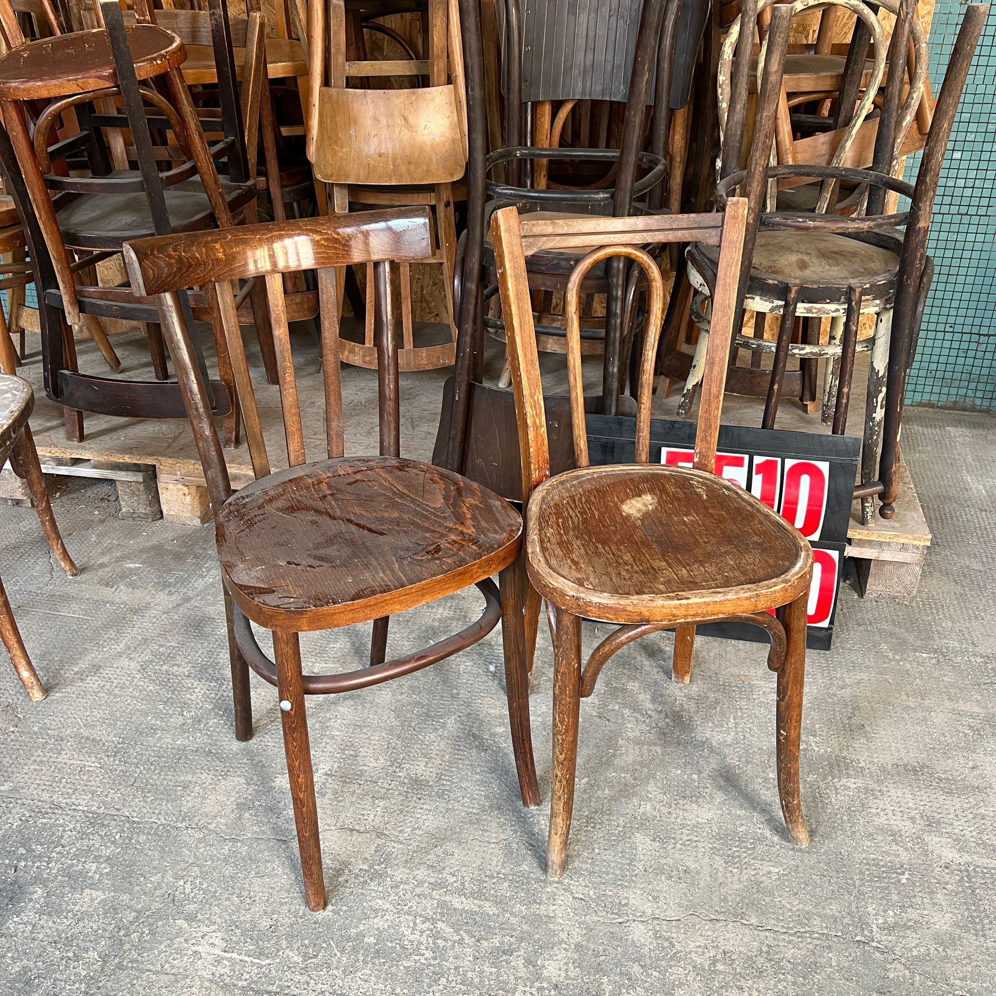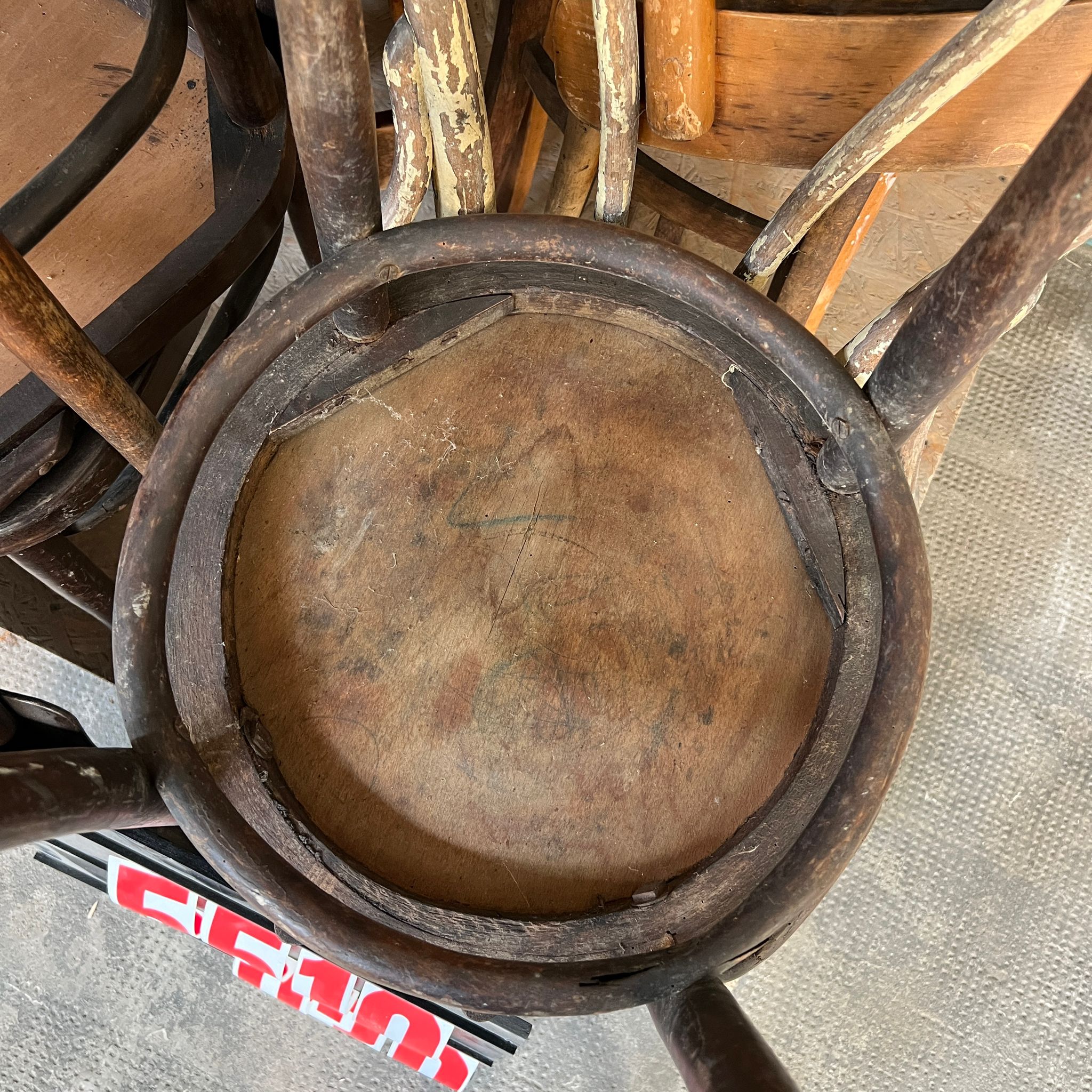 Set van dertig Harlequin pubstoelen uit de jaren 50, een mix van verschillende stijlen. Deze set bestaat uit dertig originele, voornamelijk Franse stoelen uit de jaren 50, maar ook een paar uit andere landen. Zo nu en dan krijgen we een partij stoelen van verschillende batches en fabrikanten binnen, die we dan als set samenstellen. Wat u ziet, is wat u krijgt. Alle stoelen worden in onze werkplaats nagekeken, schoongemaakt en in de was gezet, klaar voor een tweede leven. Deze gemengde set is zeer scherp geprijsd. De afmetingen variëren, aangezien het een gemengde set is. De grootste stoel heeft een zithoogte van 48 cm en de kleinste een zithoogte van 45 cm. Perfect voor de horeca. Andere afmetingen kunnen variëren, maar zie hieronder voor het gemiddelde.