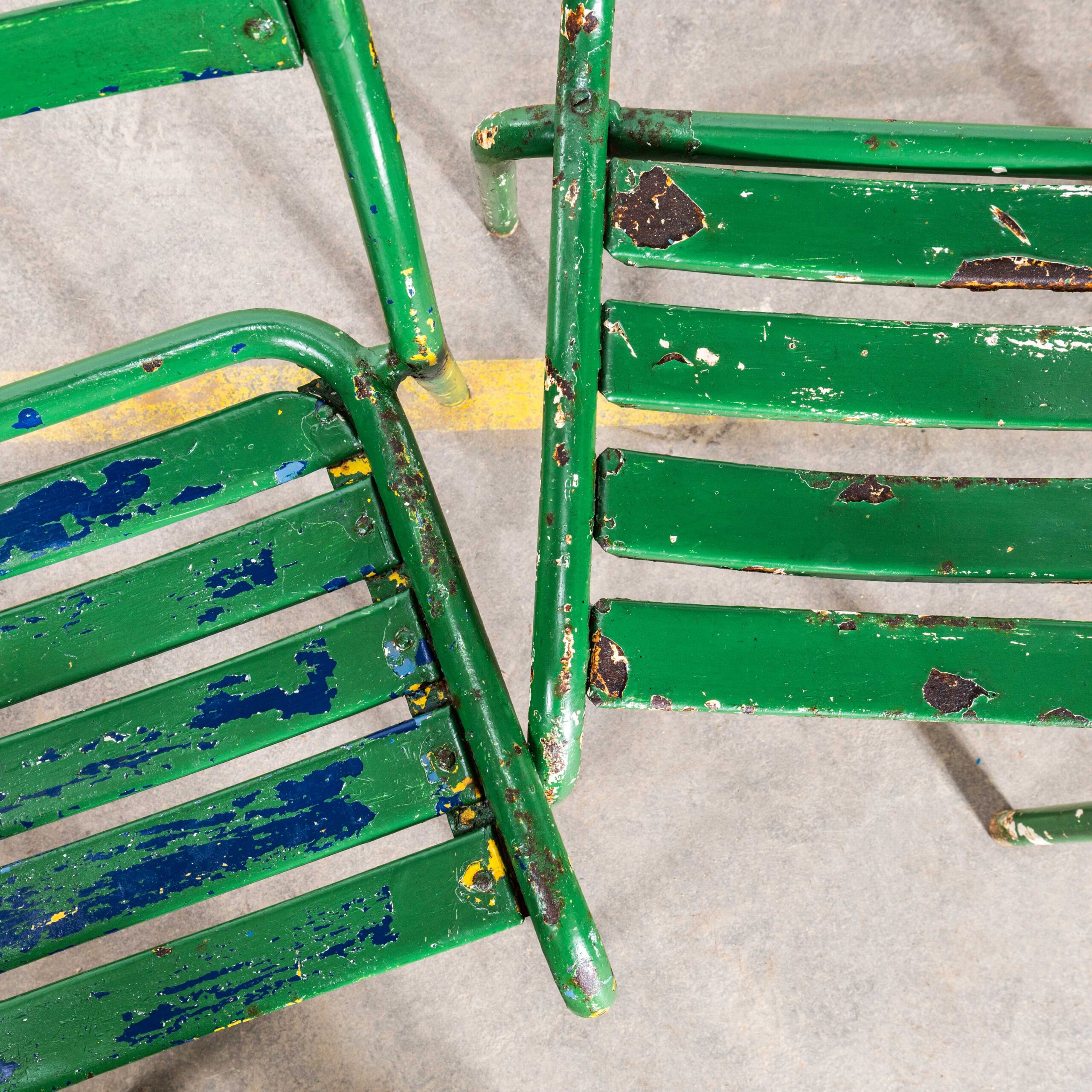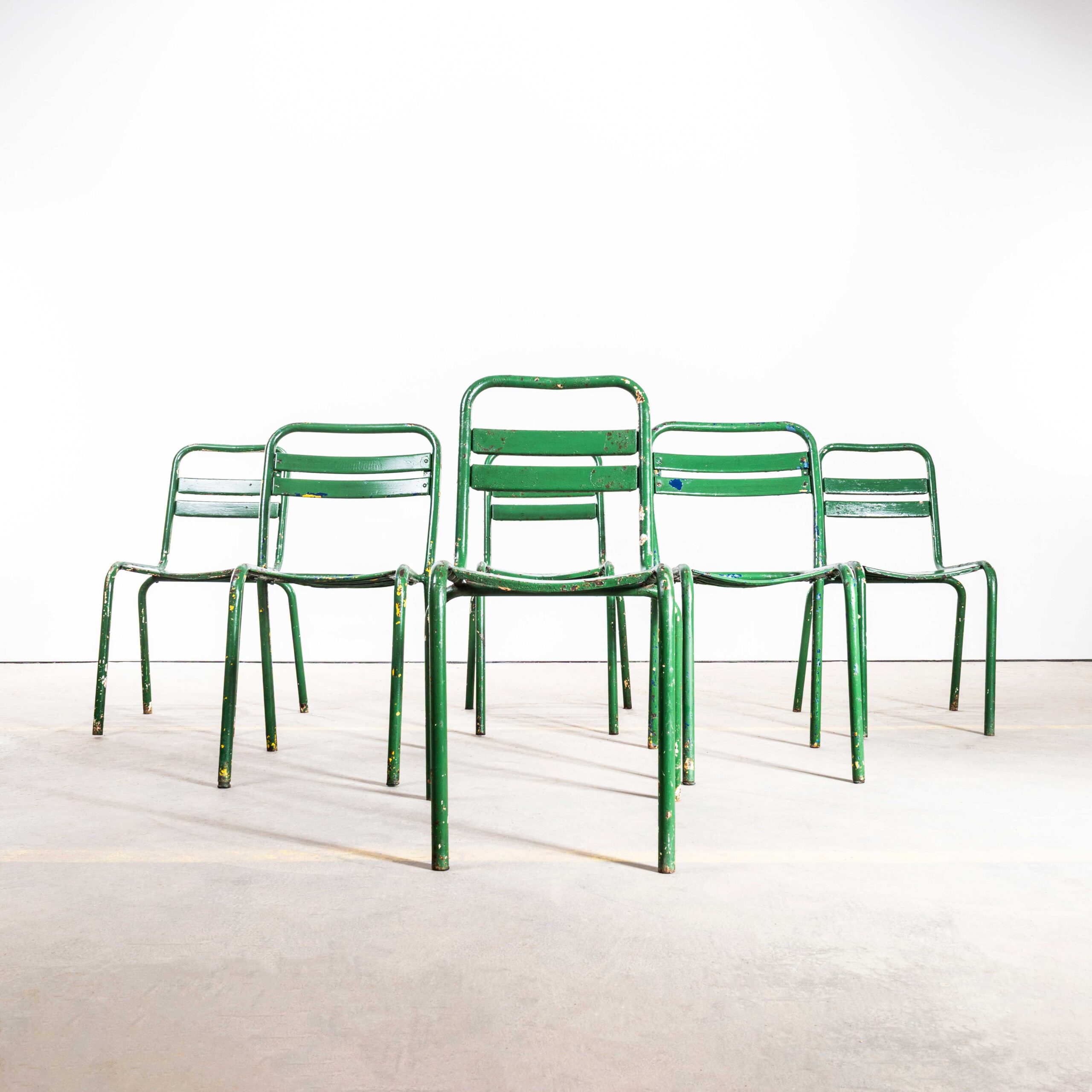 Originele Franse Tolix T2 groene eetkamerstoelen uit de jaren 50
