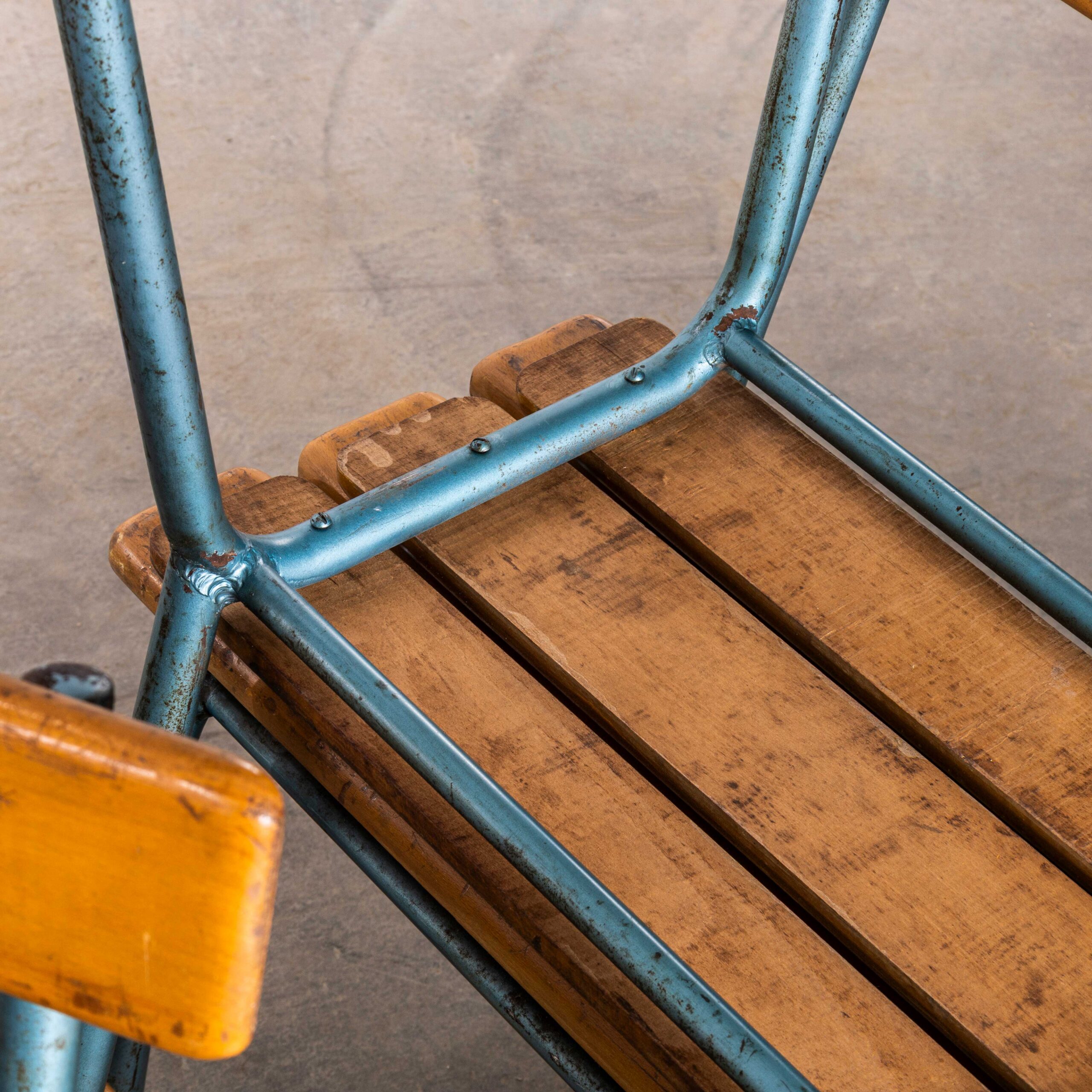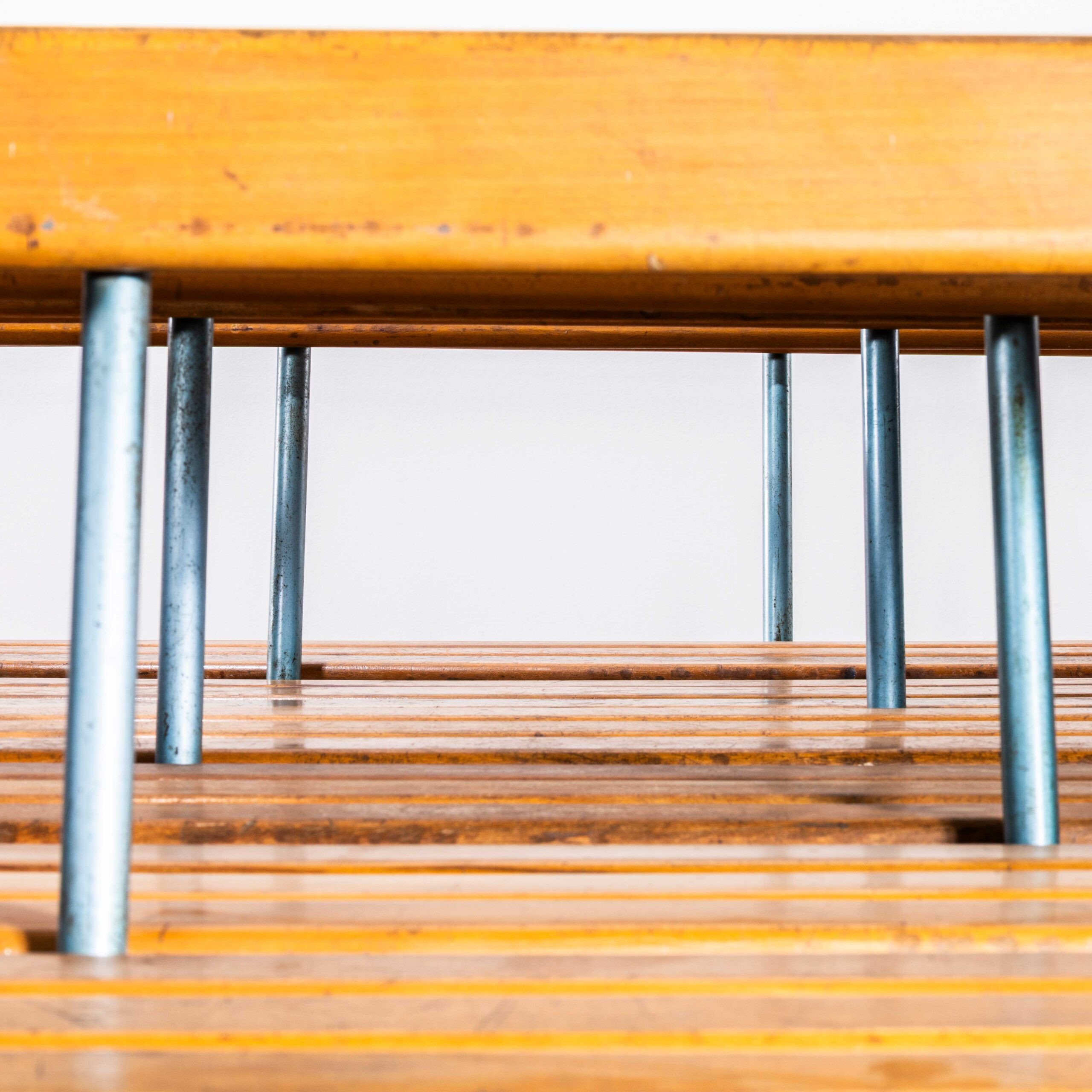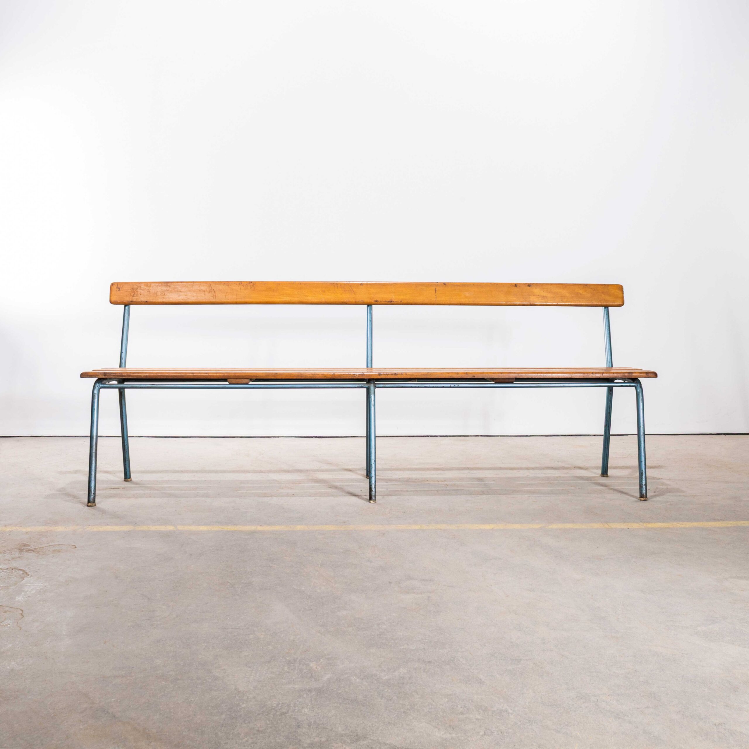 Originele Mullca lange bank met rugleuning uit de jaren 50 – 2 meter. In 1947 richtten Robert Muller en Gaston Cavaillon het bedrijf op dat later de misschien wel beroemdste Franse schoolstoel zou ontwikkelen. Helaas bestaat het bedrijf niet meer, maar vintage meubels zijn nog steeds te vinden, prachtig gemaakt met een sterk buisframe en massief berkenhouten zitting en rugleuning. Onze bank dateert uit de jaren 50 en verkeert in uitzonderlijke staat. Super comfortabel en stijlvol. Wij onderhouden en restaureren onze zitmeubelen individueel voordat ze onze werkplaats verlaten en leveren vintage meubels van uitstekende kwaliteit.