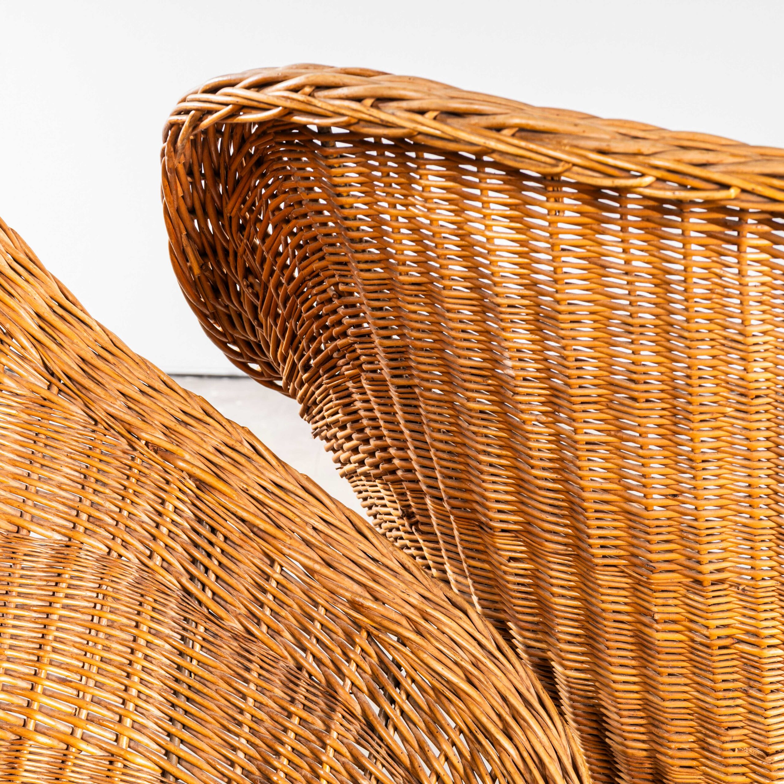 Sculpturale Franse rieten fauteuils uit de jaren 70 – Paar