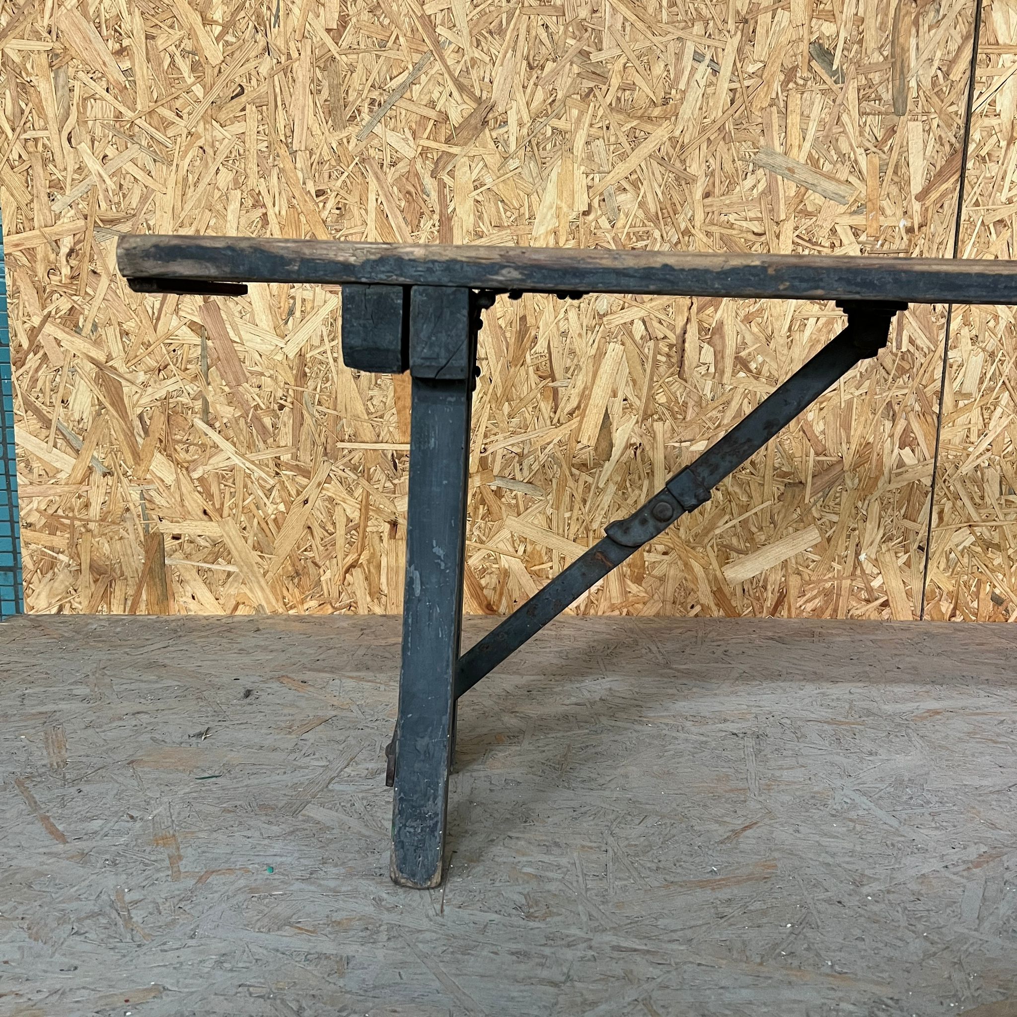 Franse brouwersbank uit de jaren 50. Een goede, originele brouwersbank. Gemaakt van grenenhout met een degelijk, inklapbaar stalen steunmechanisme. Het metalen mechanisme werkt goed, maar er is natuurlijk wel wat speling.