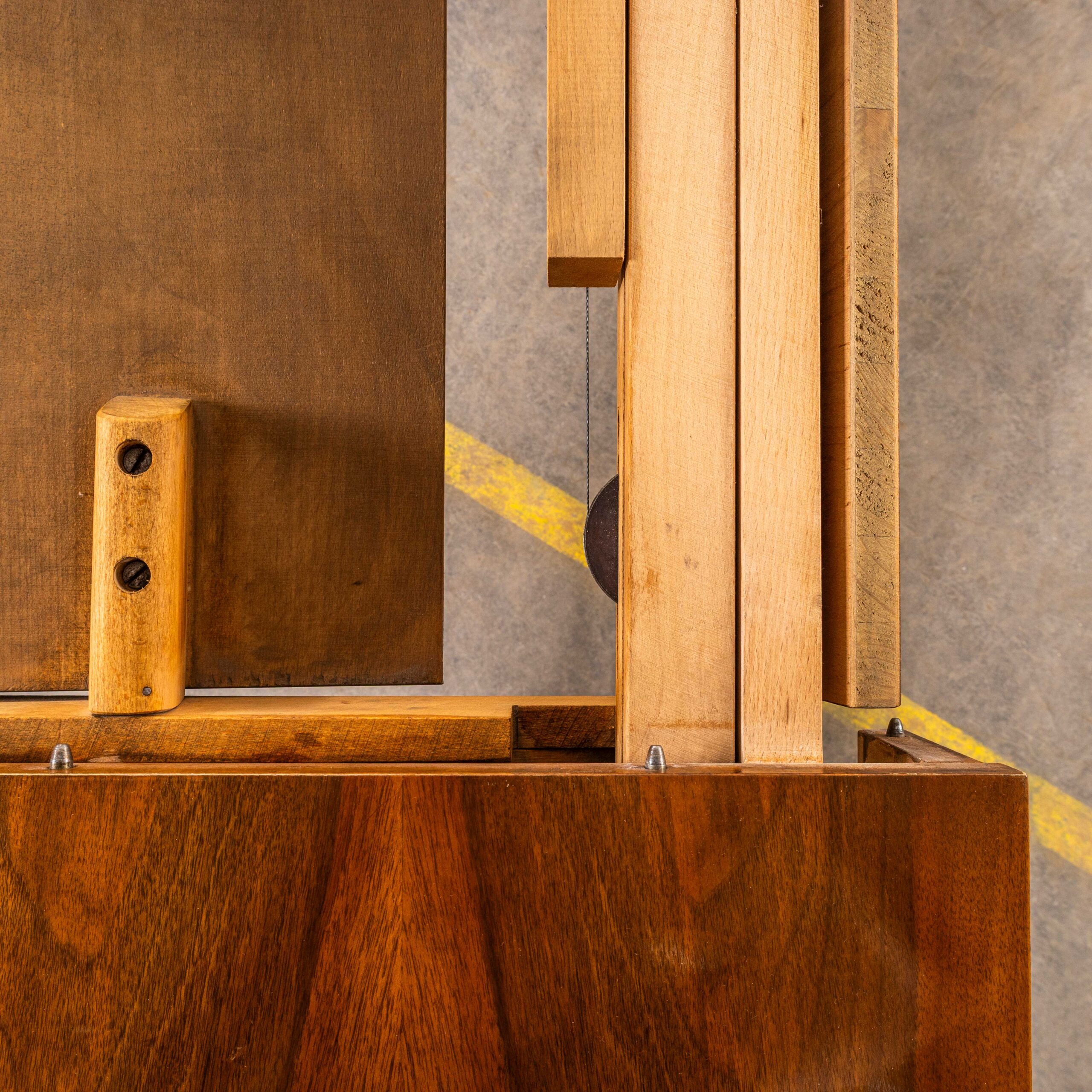 Rechthoekige uitschuifbare Halabala eettafel uit de jaren 50 – Up Zavody. Een prachtig, praktisch meubelstuk uit het midden van de vorige eeuw van de Tsjechische fabrikant Up Zavody en ontwerper Jindrich Halabala. Halabala, rechtstreeks afkomstig uit Tsjechië, was een Tsjechisch industrieel ontwerper, schrijver en docent. Halabala speelde een belangrijke rol in de ontwikkeling van naoorlogs industrieel geproduceerd Europees meubilair. Czech was een grote producent van hoogwaardig meubilair uit het midden van de vorige eeuw, volgend op de opkomst van het modernisme, ontstaan door de Bauhaus-school. De tafel is voornamelijk gemaakt van berkenhout, de poten zijn massief en sterk en het blad heeft een rijk berkenkarakter. De tafel kan worden uitgeschoven van 120 cm tot 190 cm met een eenvoudig mechanisme, waarbij het middelste blad netjes onder het tafelblad wordt opgeborgen. Let op: de kleur van het uitschuifbare blad is origineel en iets donkerder omdat het werd opgeslagen en beschermd tegen zonlicht. Onze werkplaats heeft de tafel gereinigd en onderhouden; hij is sterk, stabiel en klaar voor gebruik. Lengte van de uitgeschoven tafel: 190 cm. Knieruimte: 66 cm.