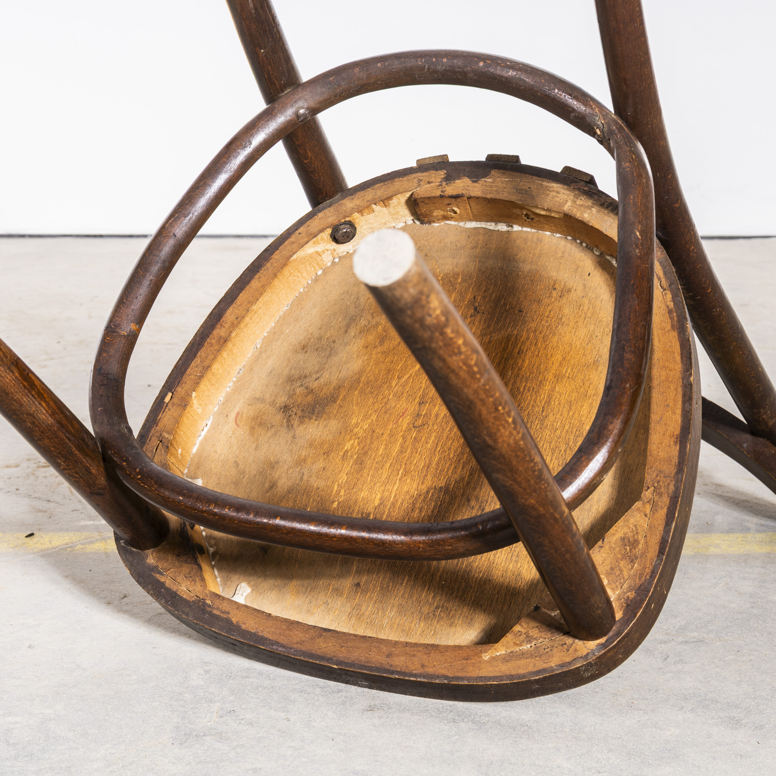 Klassieke eetkamerstoelen met halvemaanvormige rugleuning uit de jaren 70 van Ton – paar. Hoogwaardige eetkamerstoelen van goede kwaliteit, geproduceerd door de beroemde Tsjechische firma Ton, die nog steeds actief is en prachtige stoelen produceert. We hebben het frame zorgvuldig gerestaureerd, maar het originele karakter en de patina, waar deze stoel om draait, behouden. Een sterke, stevige stoel met een goede pasvorm en comfortabele, diepe, halvemaanvormige rugleuningen. We onderhouden elke stoel afzonderlijk voordat deze onze werkplaats verlaat en leveren stoelen van uitstekende kwaliteit.