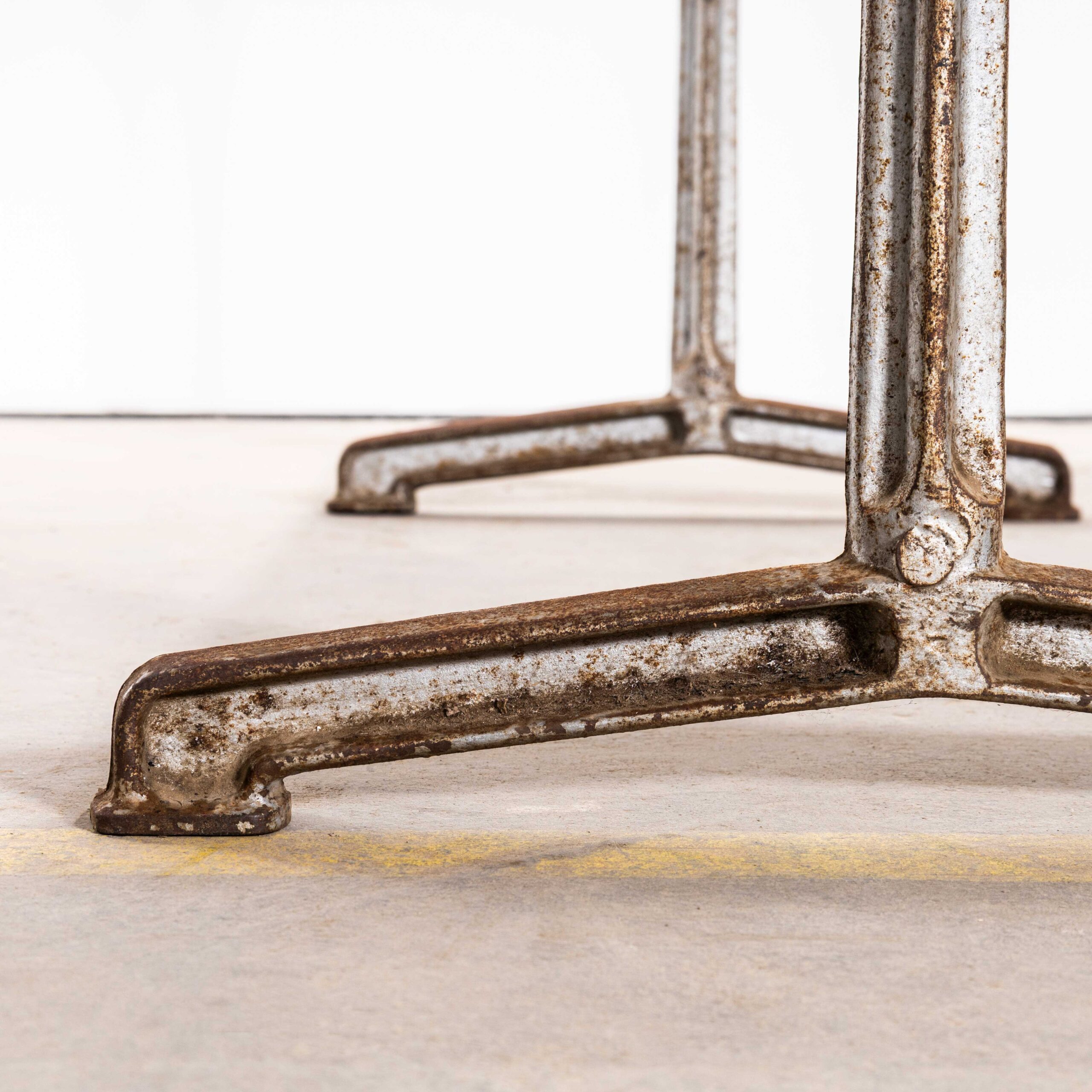 1930’s Original French Cast Base Café Dining Table. Fischel was founded in 1871 by Czech born David Gabriel Fischel, a successful vegetable oil merchant, using the first hand knowledge of his eldest son who had worked in one of Thonets Czech factories. First production was made in Germany in Niemes near the Danube. Later production moved to France in Alsace and sales offices were opened in most major French cities as Fischel became a major furniture producer. This table dates from the thirties featuring a heavy, solid cast metal base and the original rich coloured fruitwood top. A beautiful survivor in original condition throughout, a practical table.