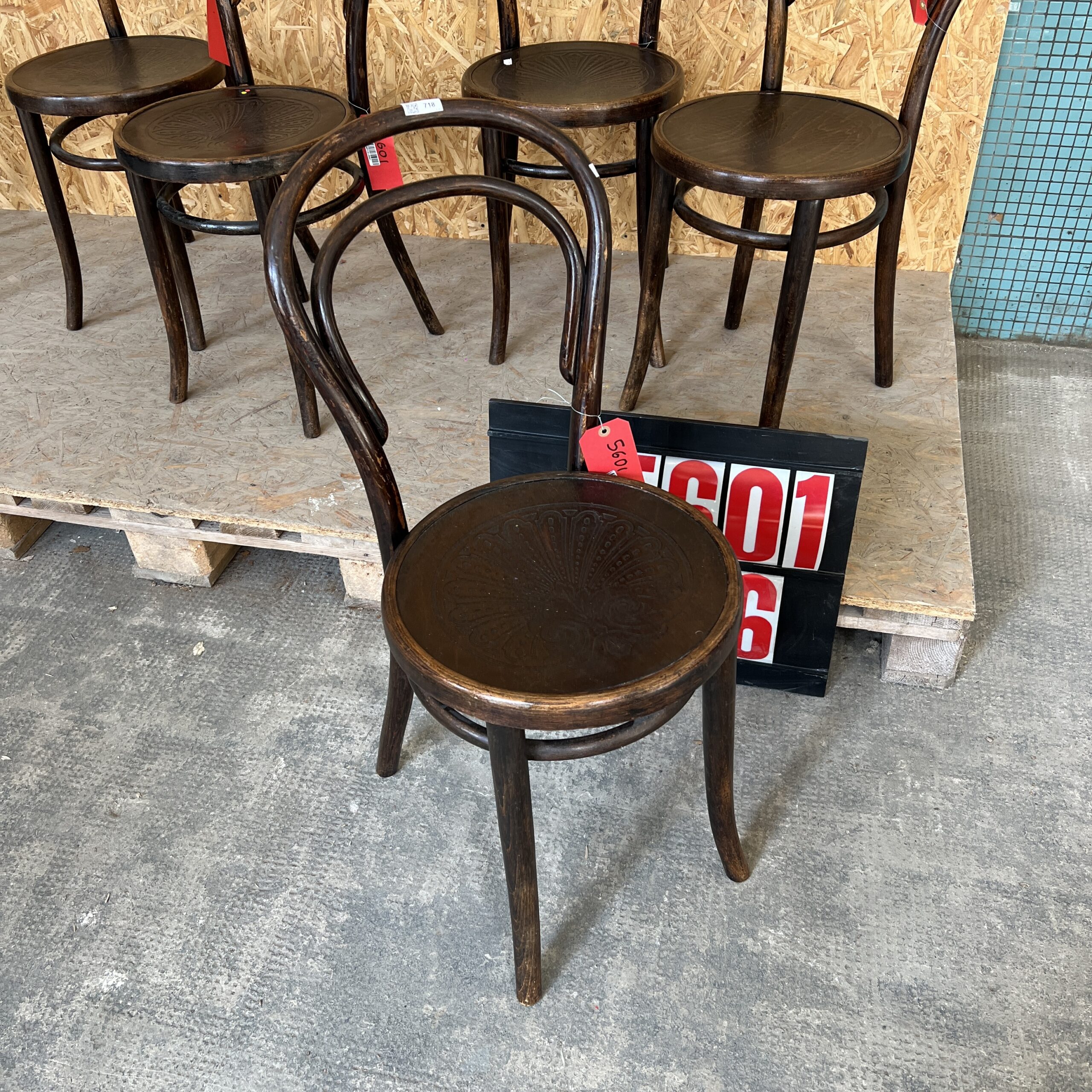 1940’s Classic Hoopback Thonet Dining Chairs – Set Of Six. Founded in the early 19th Century by Michael Thonet, Thonet invented the process of steam bending wood under pressure and used this to design the classic bentwood chairs still in production today. In the 19th Century he had a large network of shops throughout Europe and was a huge furniture retailer. This is a simple elegant set of original Thonet chairs, they are not stamped with the makers mark but we are very confident they are. The chairs have a very rich colour and character and are in good condition, they all feature the most exceptional stamped seats. The chairs have been gently refurbished in our own workshops and are in good working condition. The chairs are made in the classic bentwood style of early Thonet pieces.