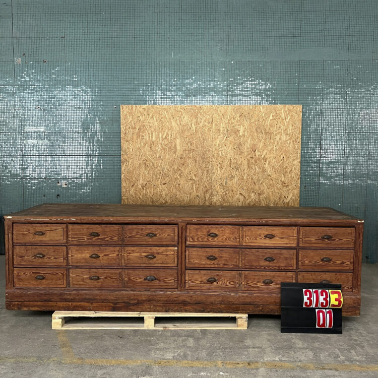 1940’s French Hardware Twelve Drawer Bank Of Drawers