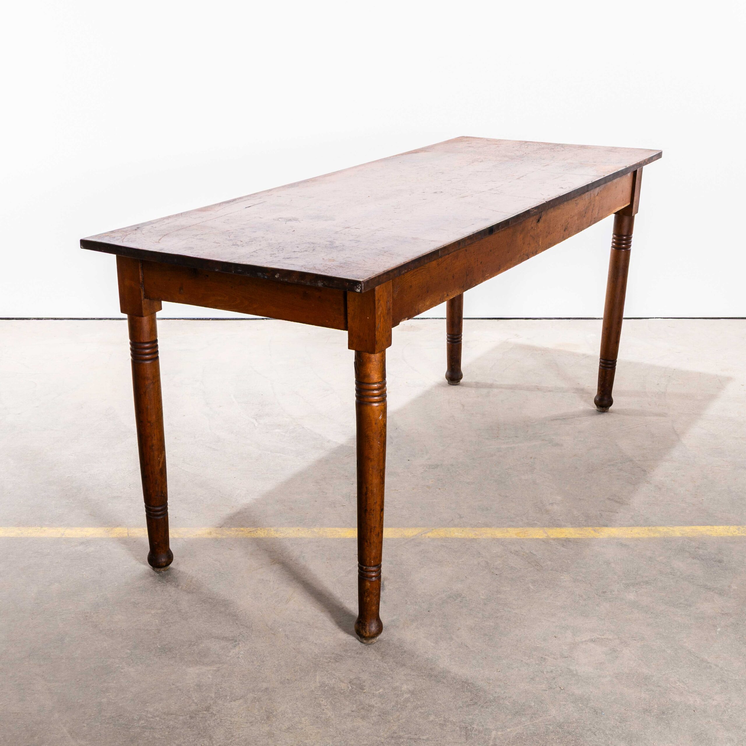 1940’s French Long Barrel Leg Mid Oak Fruitwood Kitchen Dining Table