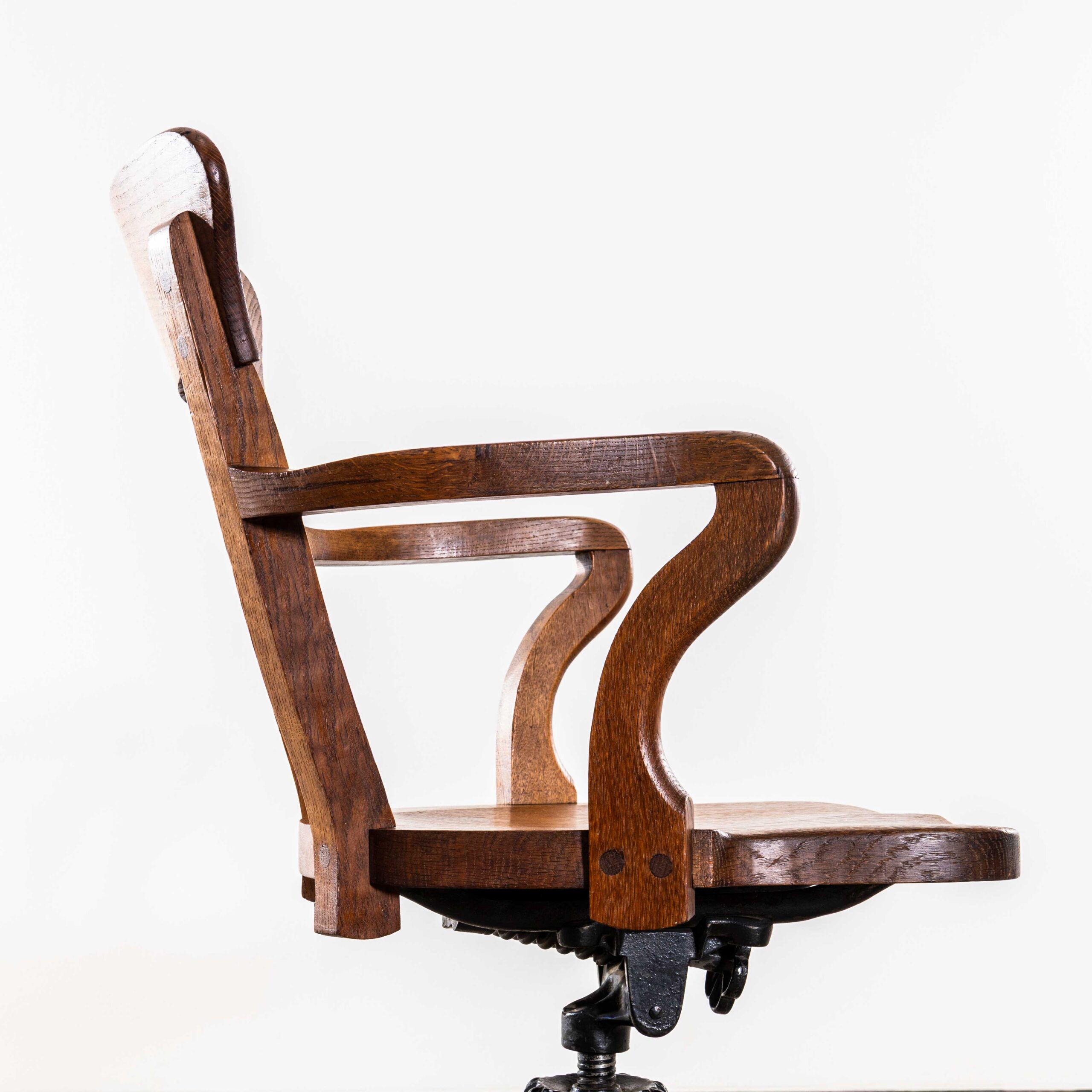 1950’s Cast Base American Oak Swivel Desk Chair