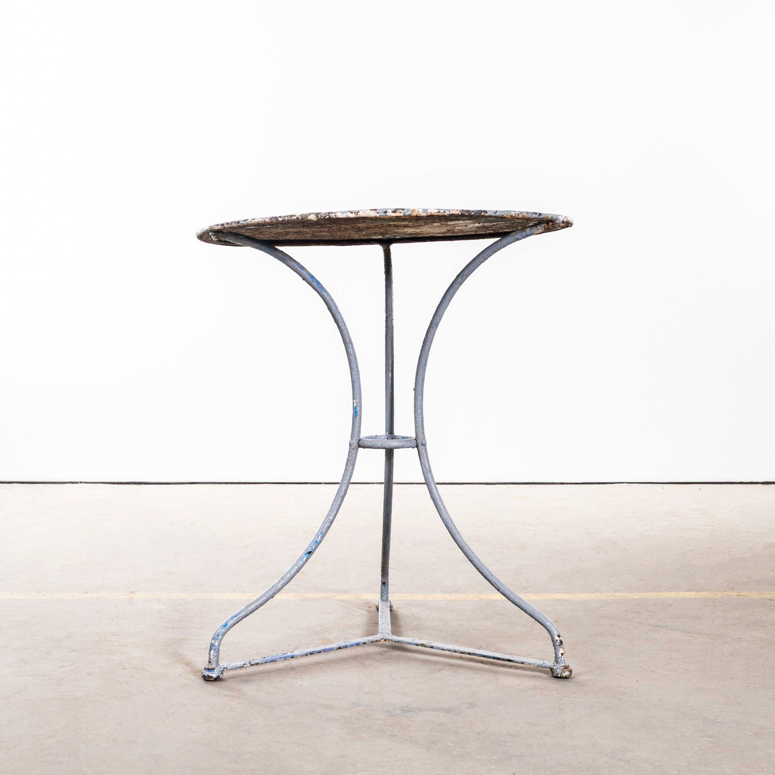 1950’s French Grey Metal Round Outdoor Small Gueridon Table