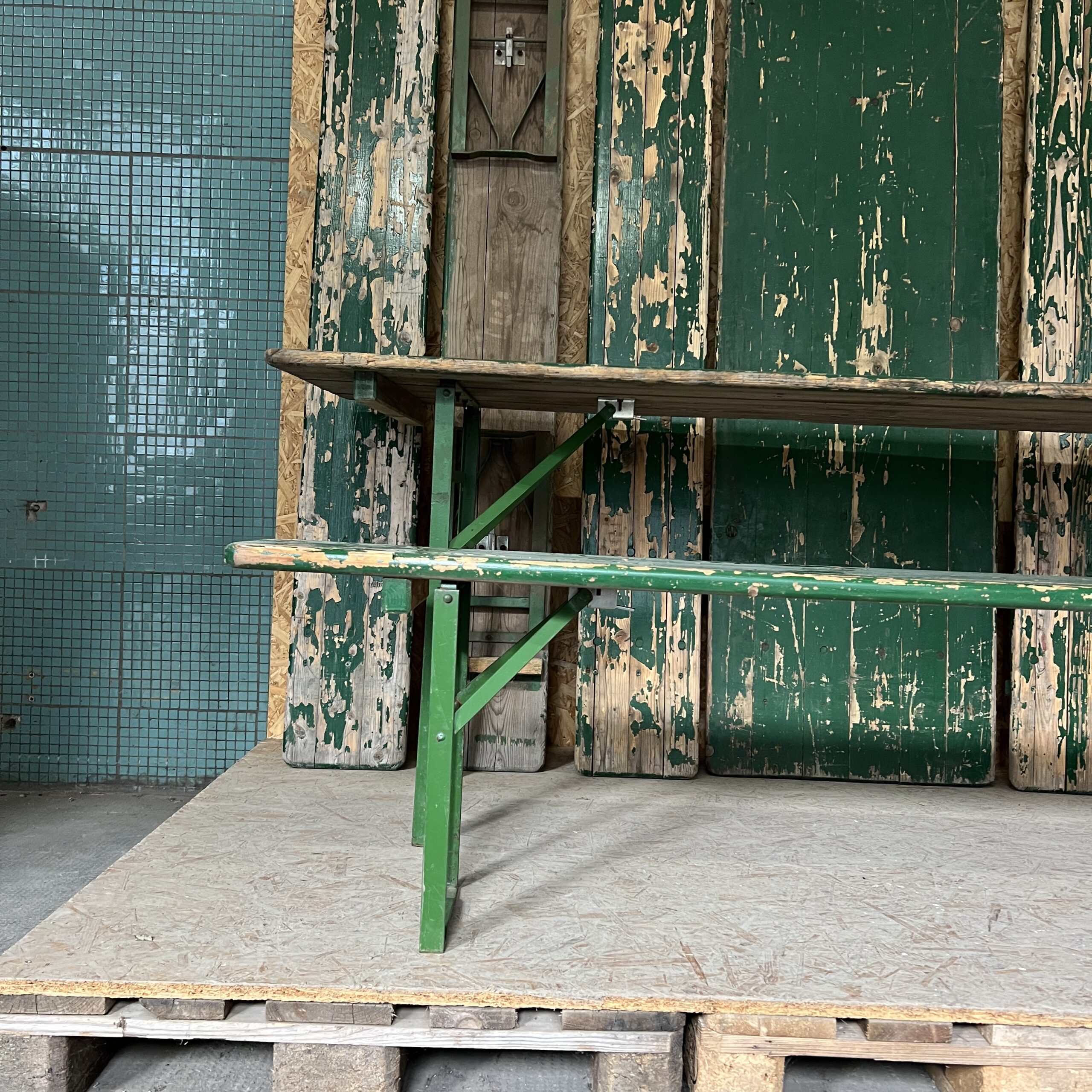 1950’s Green Ex Army Large French Folding Bench & Table Set