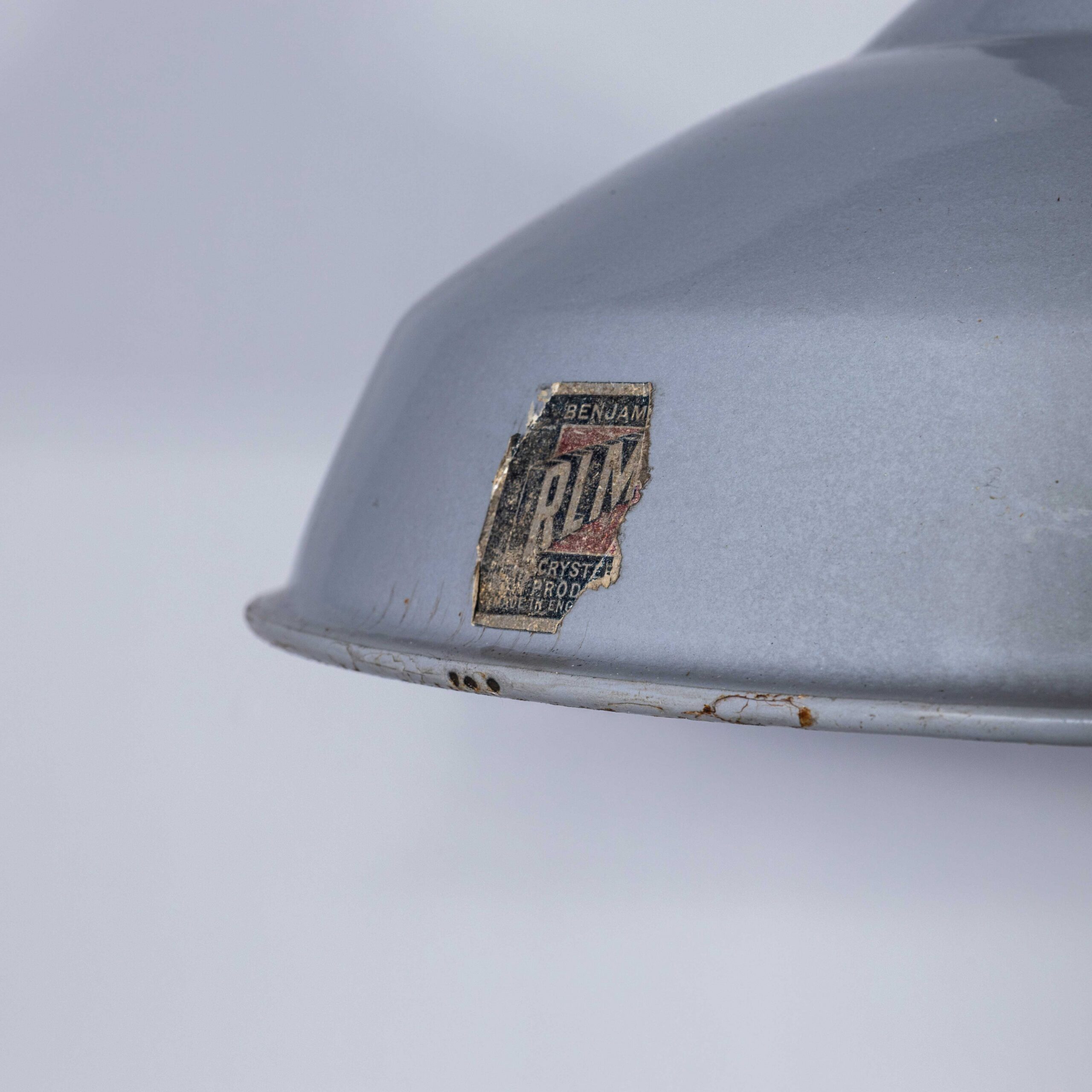 1950’s Industrial Benjamin Enamelled Grey Pendant Lamps (Model 4) – 14 Inch. Benjamin was arguably the market leader in industrial lighting in the 1930’s through to 1960’s. Their main market was providing tough enamelled lamps to large factories. These lamps came from a warehouse in Doncaster. The lamps were covered in paint, grease and dirt which was removed to reveal lamps in exceptional original condition. Each lamp has been cleaned and restored and all electrical components have been removed and replaced with modern European CE standard components to BS EN 60598. Each lamp is individually tested and labelled to BS EN 60598. INCLUDED: Each lamp comes completely wired and ready to install with integrated cable clamps allowing the lamps to self hang on the electrical flex. The lamp comes with 2 metres of black silk covered electrical cable and integrated clamp ceiling hook as shown. The lamp is fitted with a standard E27 threaded lamp holder for which a wide range of modern and vintage style filament bulbs are widely available. We do not currently sell bulbs and recommend LED bulbs 6W maximum. We can also supply more than 2 metres of wire as required, please contact us separately to discuss. We are specialists in refurbishment of vintage lighting, please contact us with any questions regarding purchase or installation. The lamp is currently wired and fitted for UK and EU compliance. The lamp can be wired for compliance in the US or any global market.