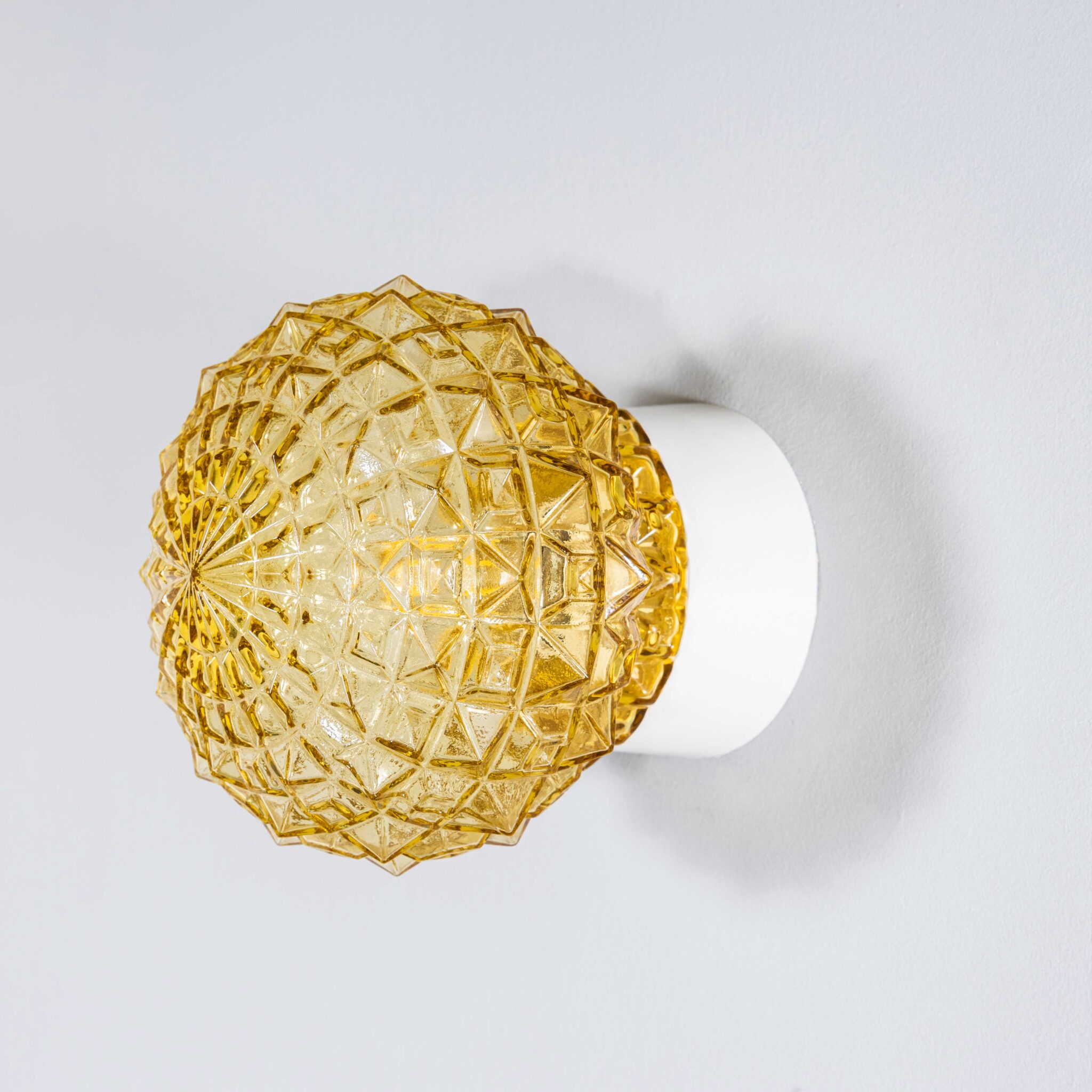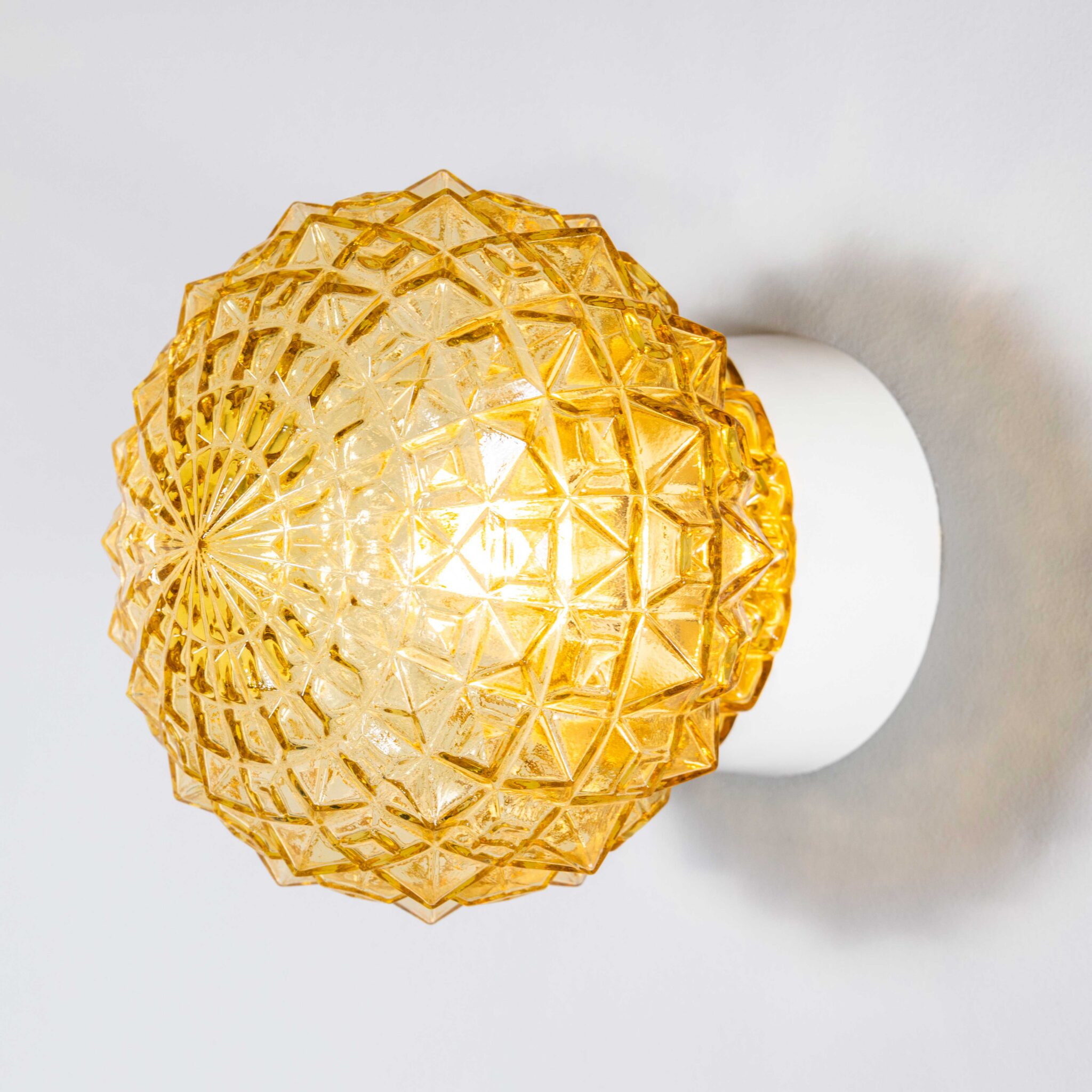 1950’s New Old Stock Amber Pineapple Globe Ceiling Or Wall Lamp