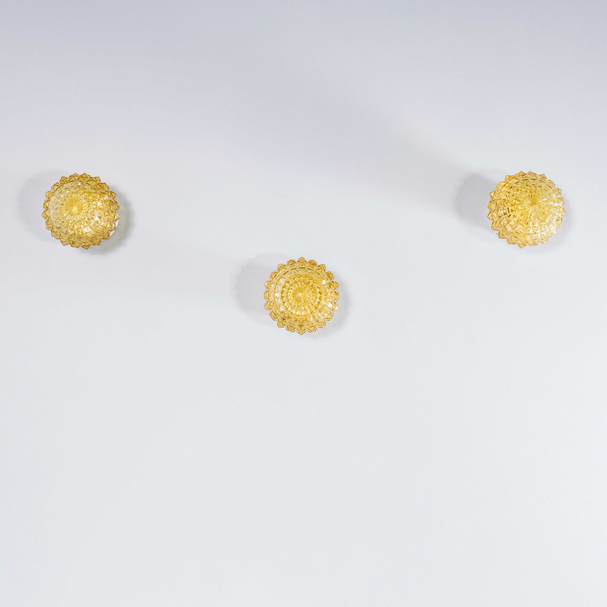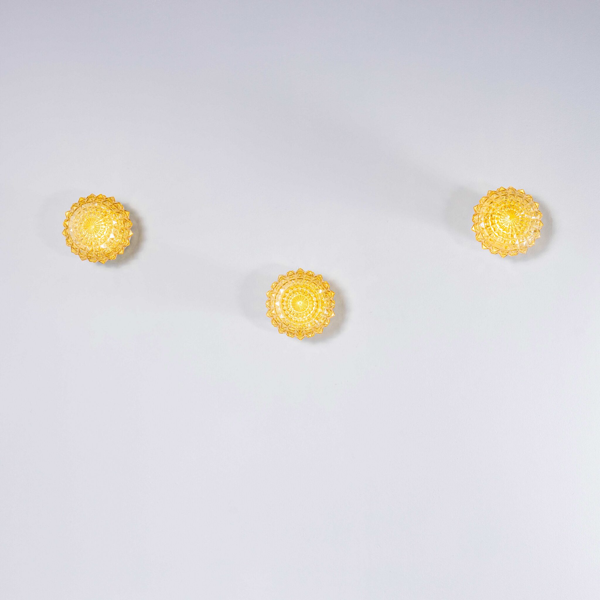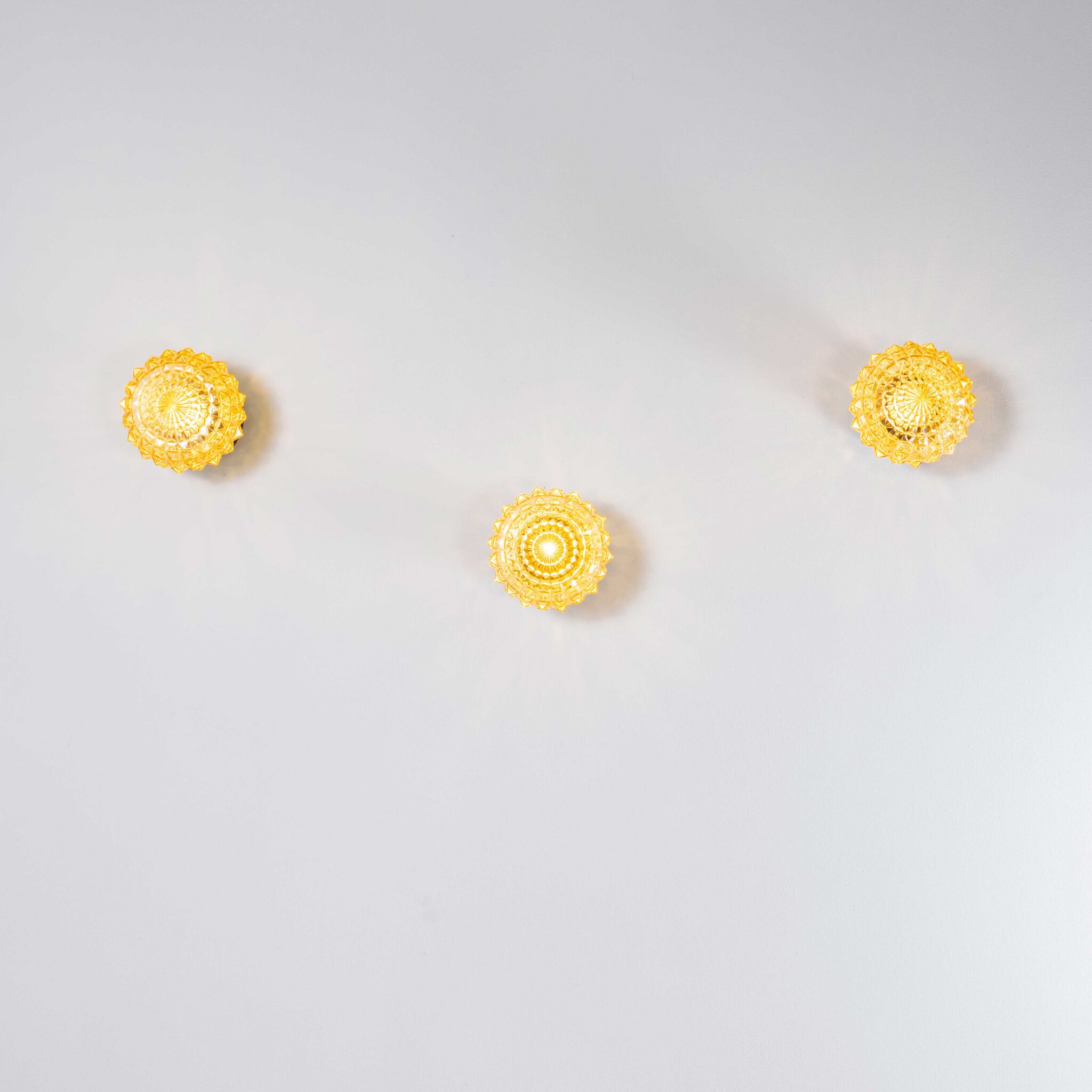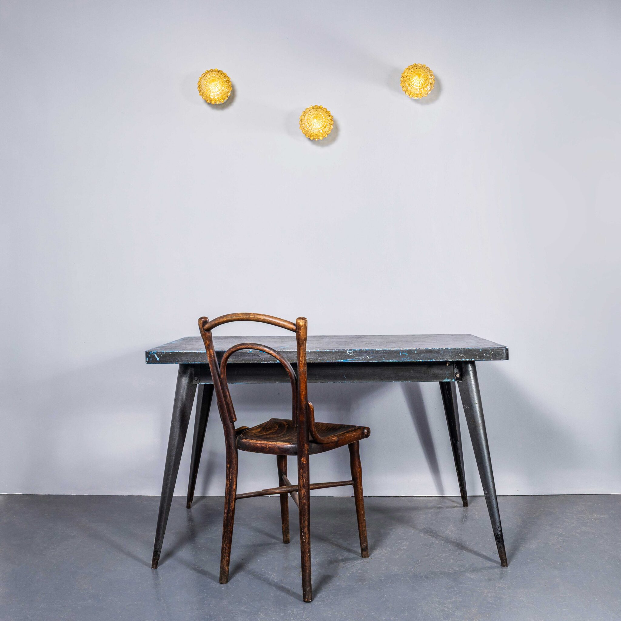 1950’s New Old Stock Amber Pineapple Globe Ceiling Or Wall Lamp. The wall mount tops are a type of original Bakelite (self insulated) and simply screw into the glass globe. Each lamp has been cleaned and restored. Given the unique nature of the Bakelite wall mounts the original female bulb inserts are retained. The lamp is pre wired and PAT tested ready for connection. The lamp is fitted with a standard E27 threaded lamp holder for which a wide range of modern and vintage style filament bulbs are widely available. We do not currently sell bulbs and recommend LED bulbs 6W maximum. We are specialists in refurbishment of vintage lighting, please contact us with any questions regarding purchase or installation. The lamp is currently wired and fitted for UK and EU compliance. The lamp can be wired for compliance in the US or any global market. Listing is for one lamp.
