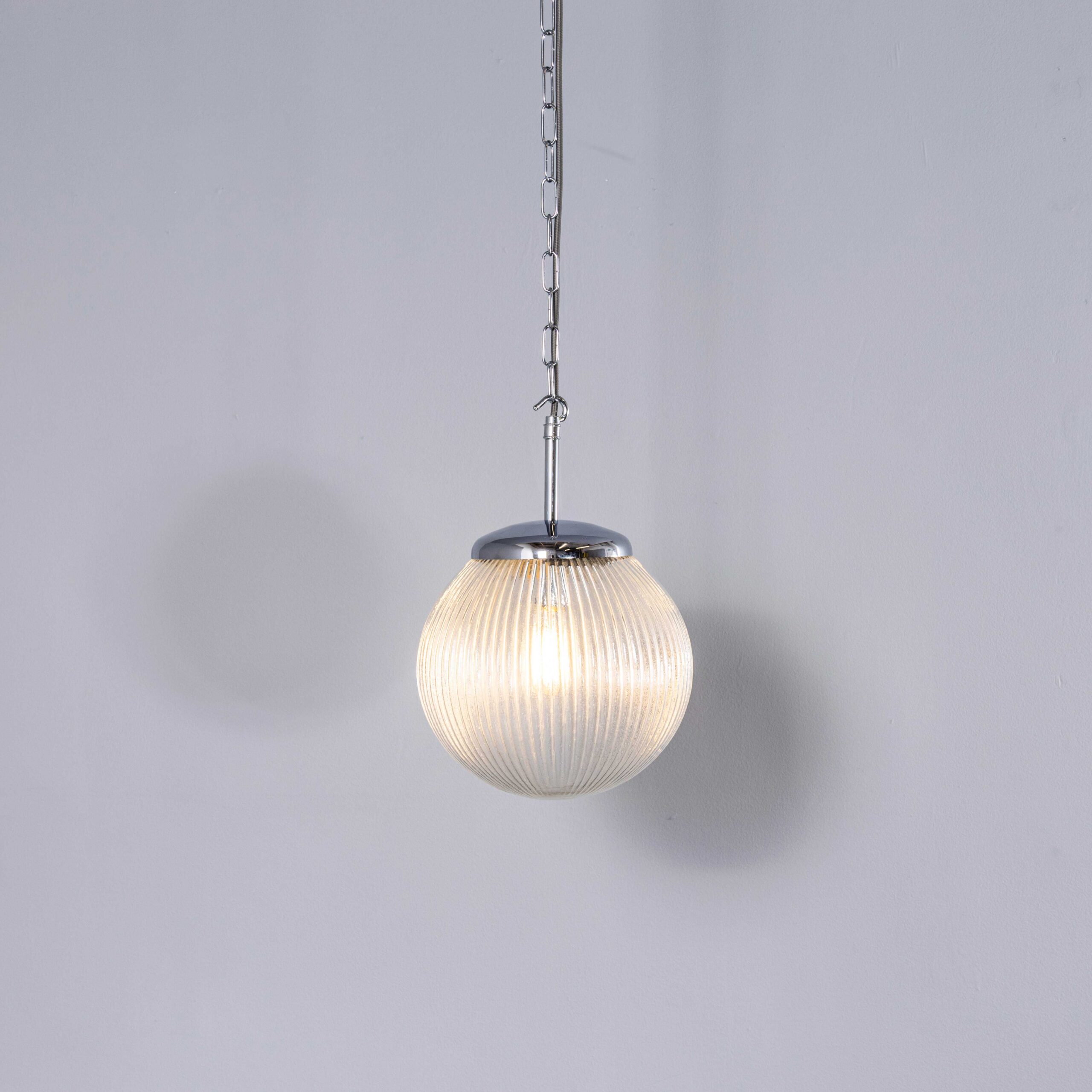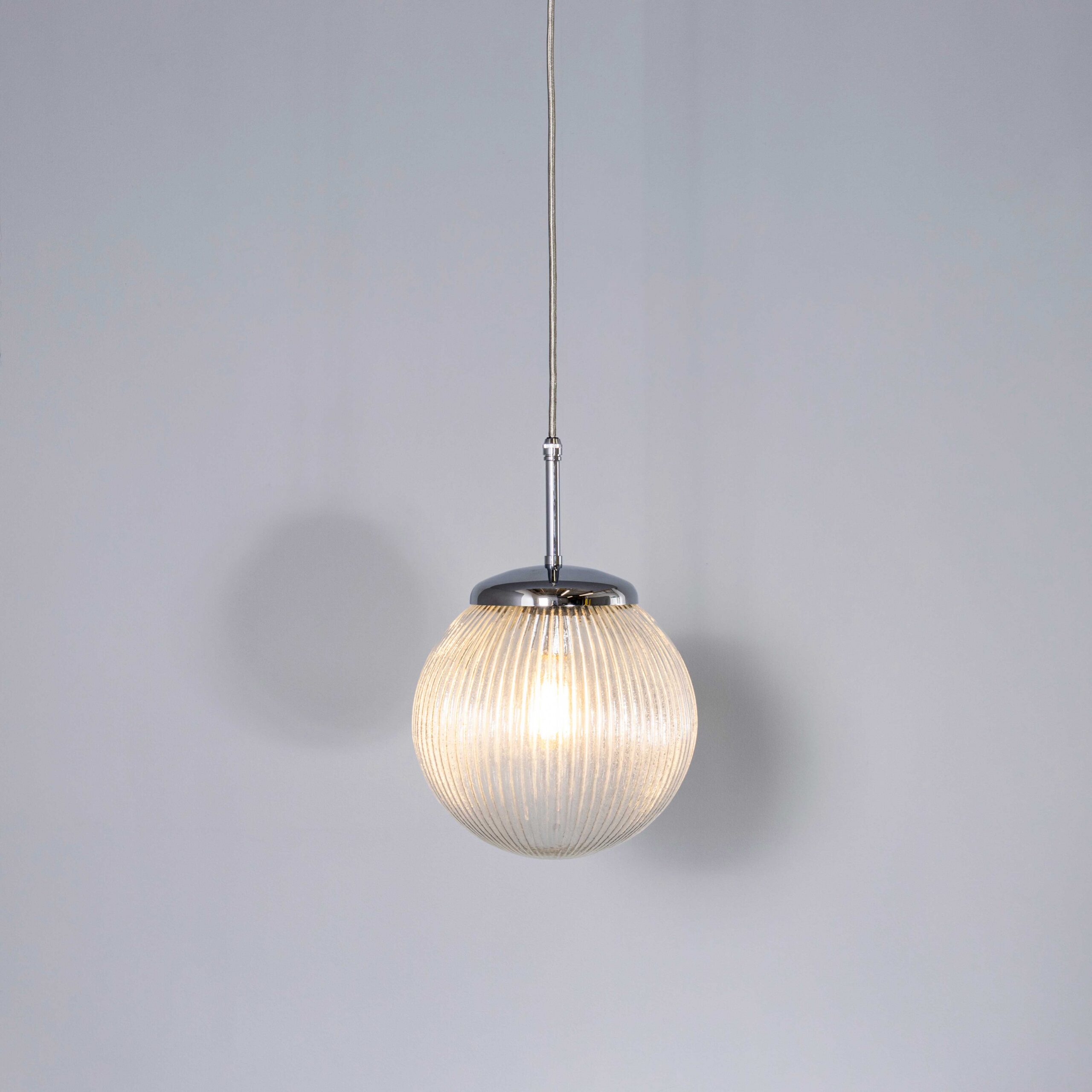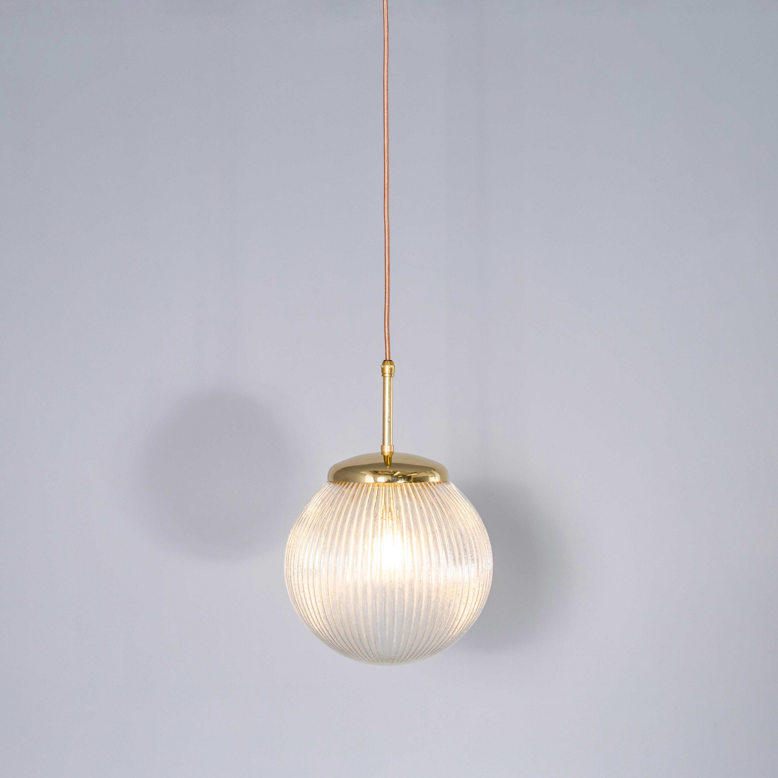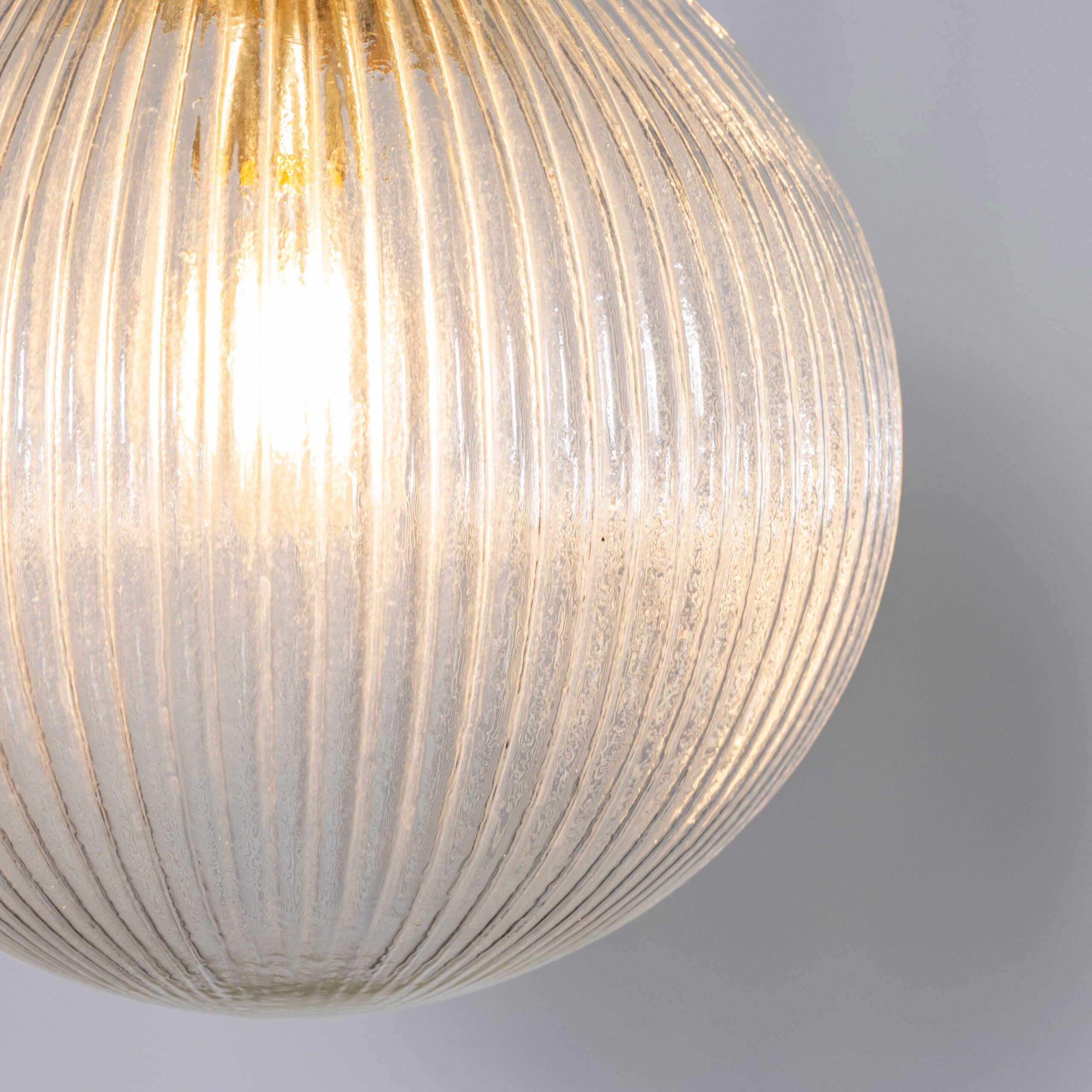 1950’s Ribbed Clear Pendant Glass Lamps Lamps – 25cm. Beautiful original ribbed clear pendant lamps featuring mouth blown glass in a ribbed pattern. We have a number of these stunning original lamps available, salvaged from a hotel in the Czech republic.