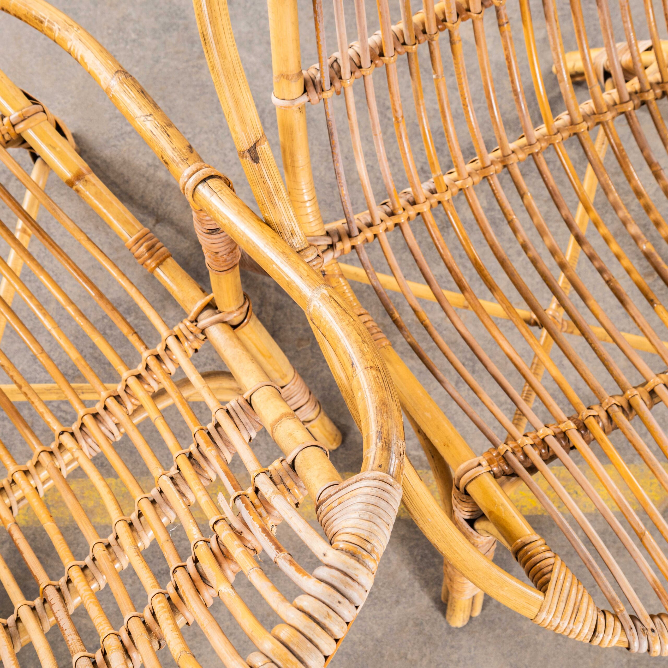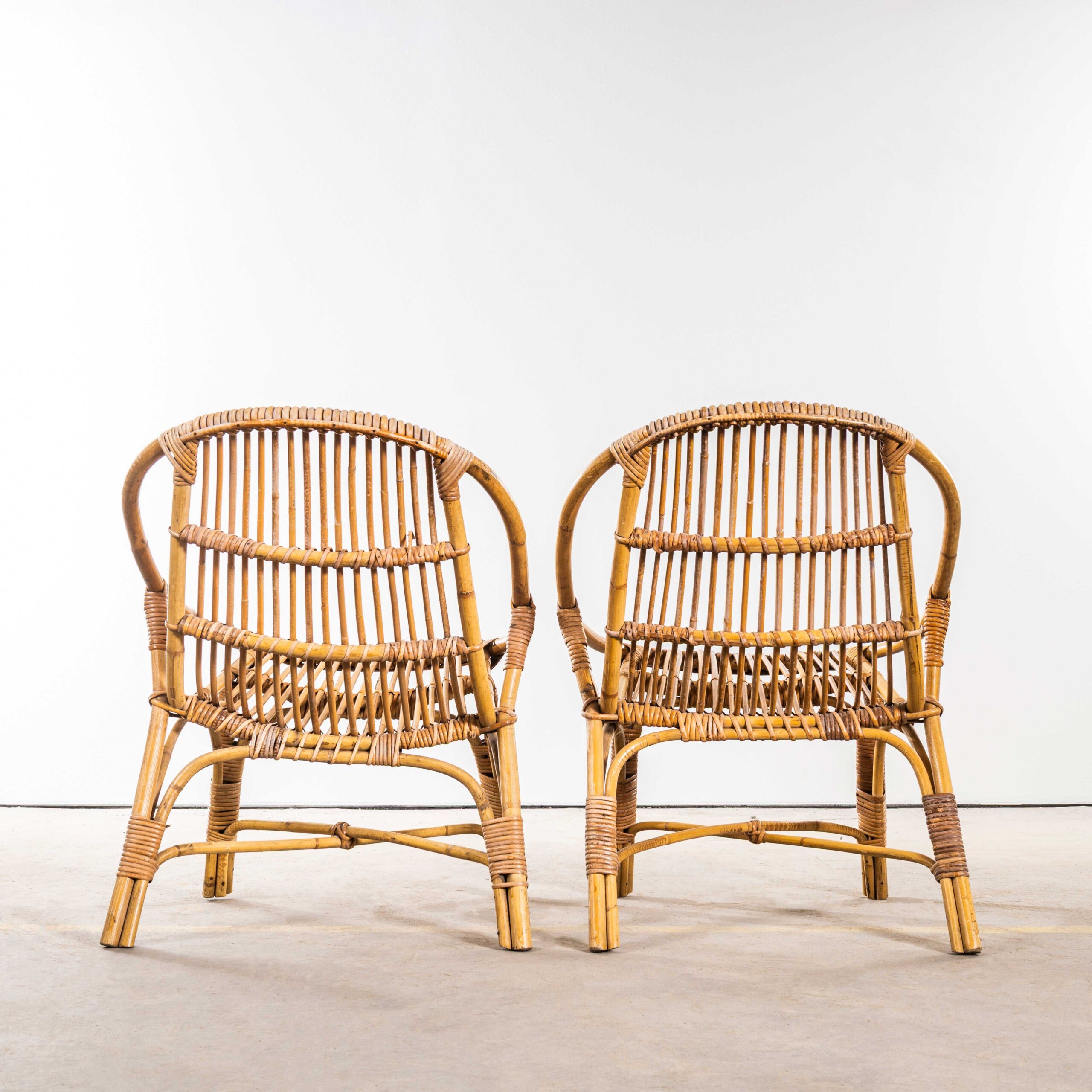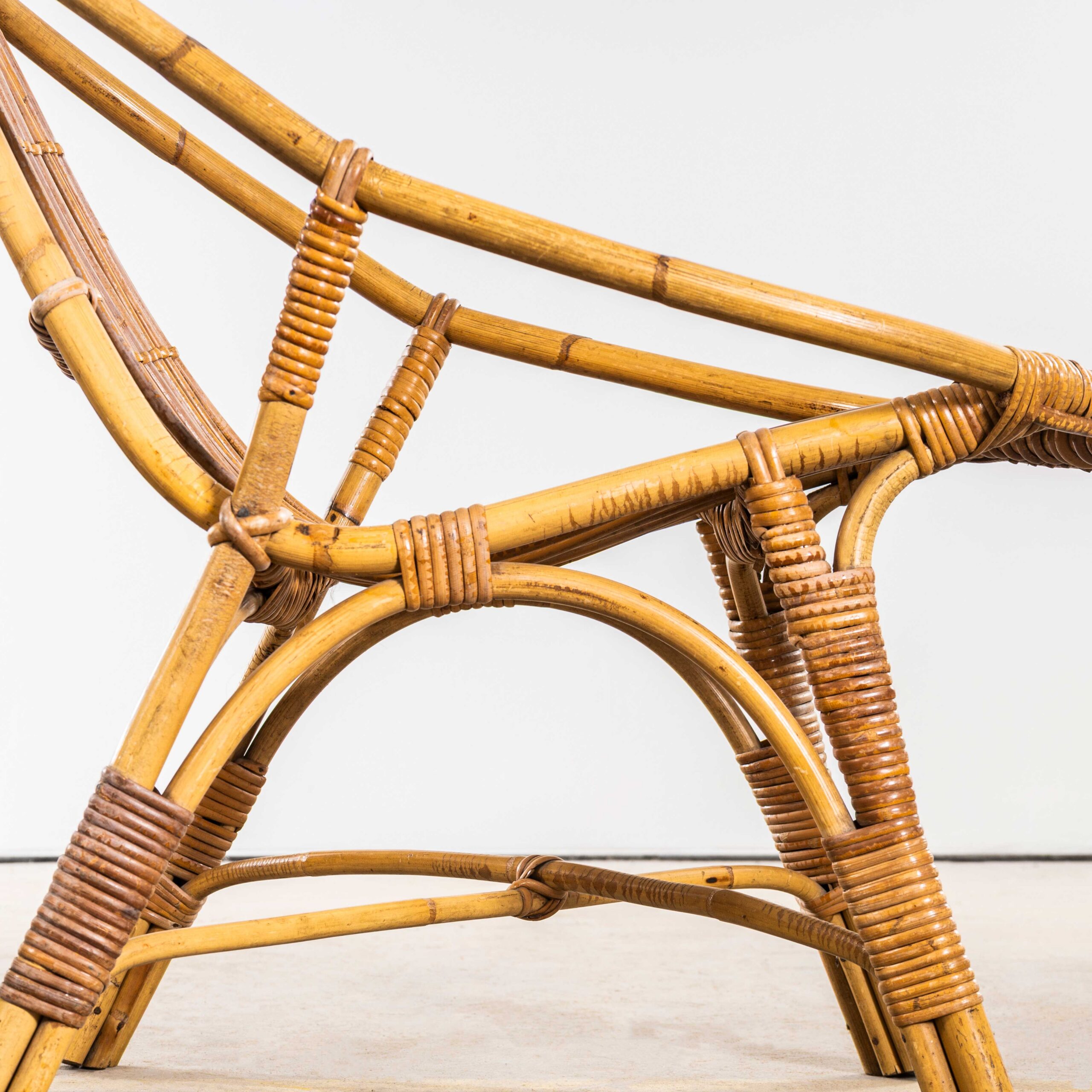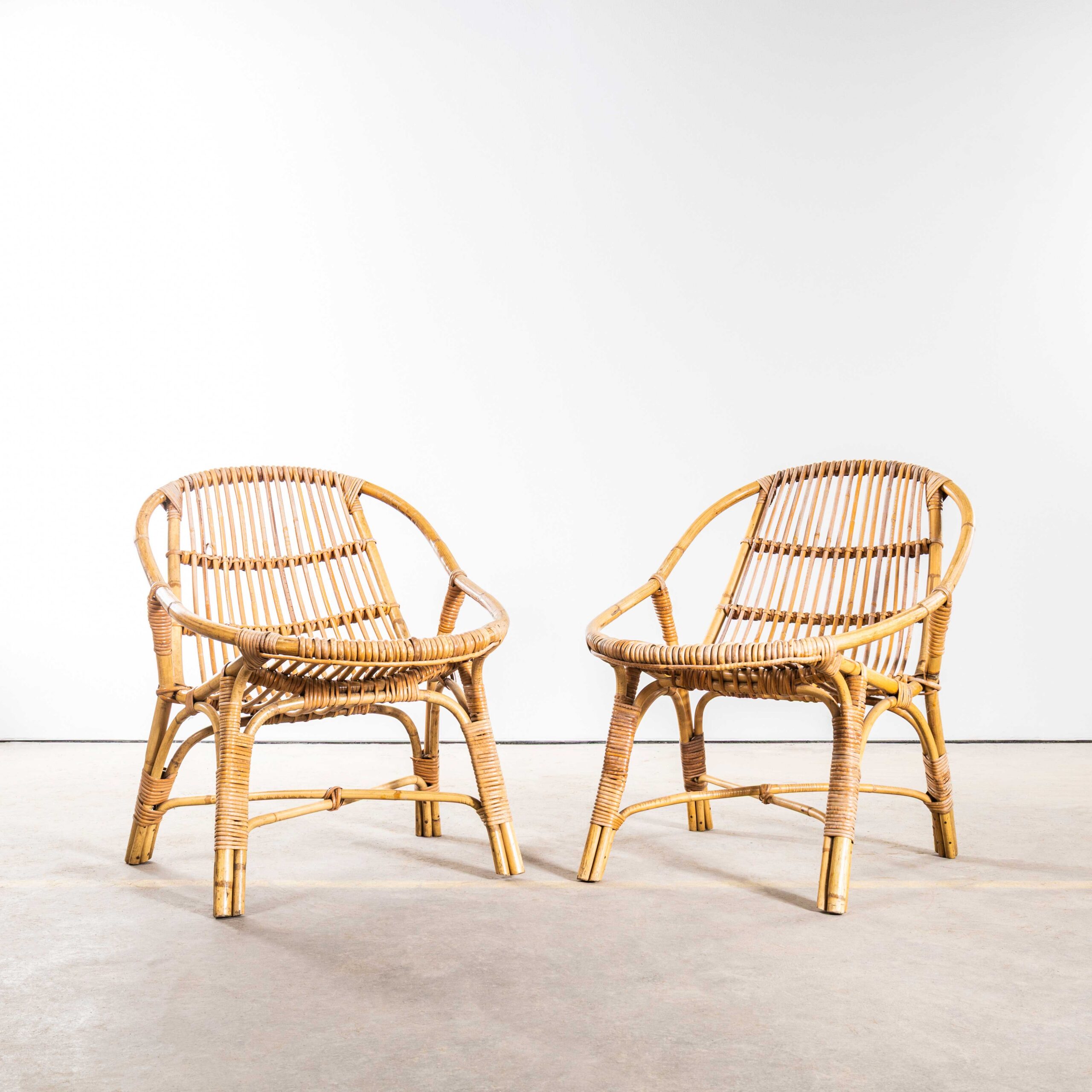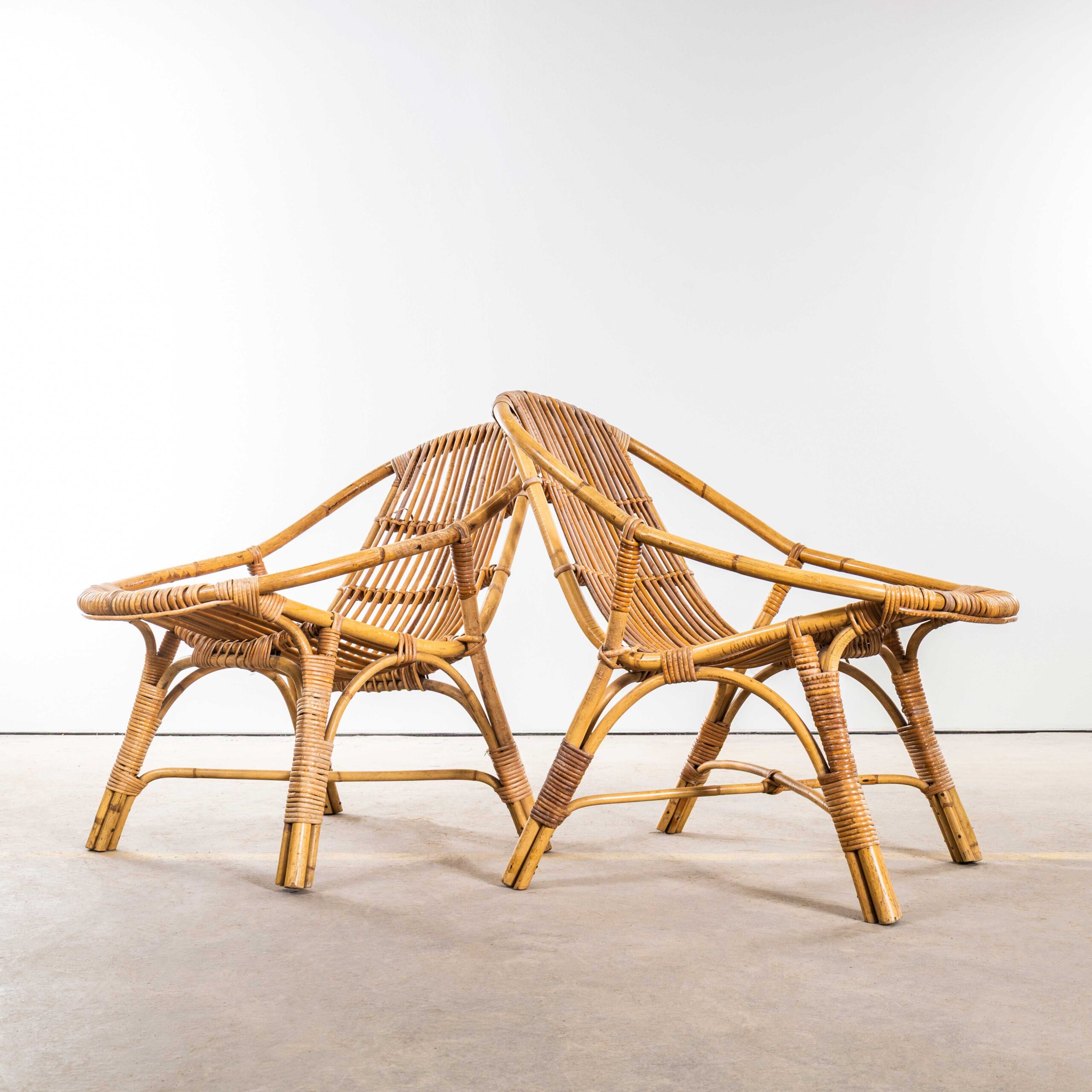1960’s French Low Seat Rattan Armchairs – Pair. Good simple French chairs from the sixties in very good original condition with simple swooping rattan frames.